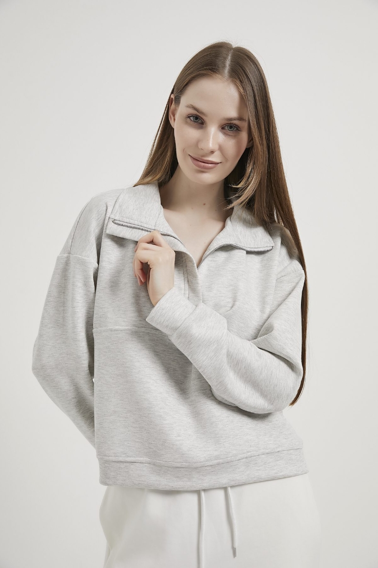 ARMALIFE 1703 PREMIUM MODAL DİK YAKA FERMUAR DETAYLI KADIN SWEATSHIRT