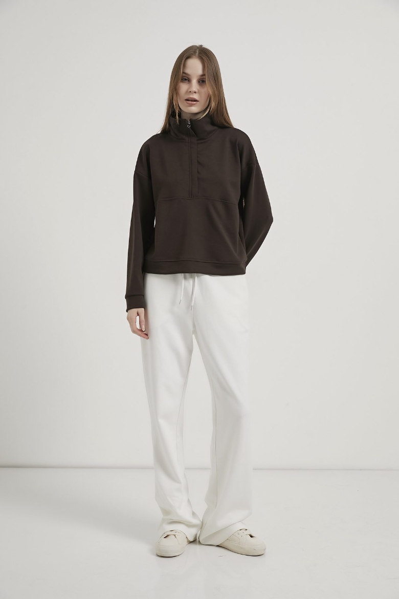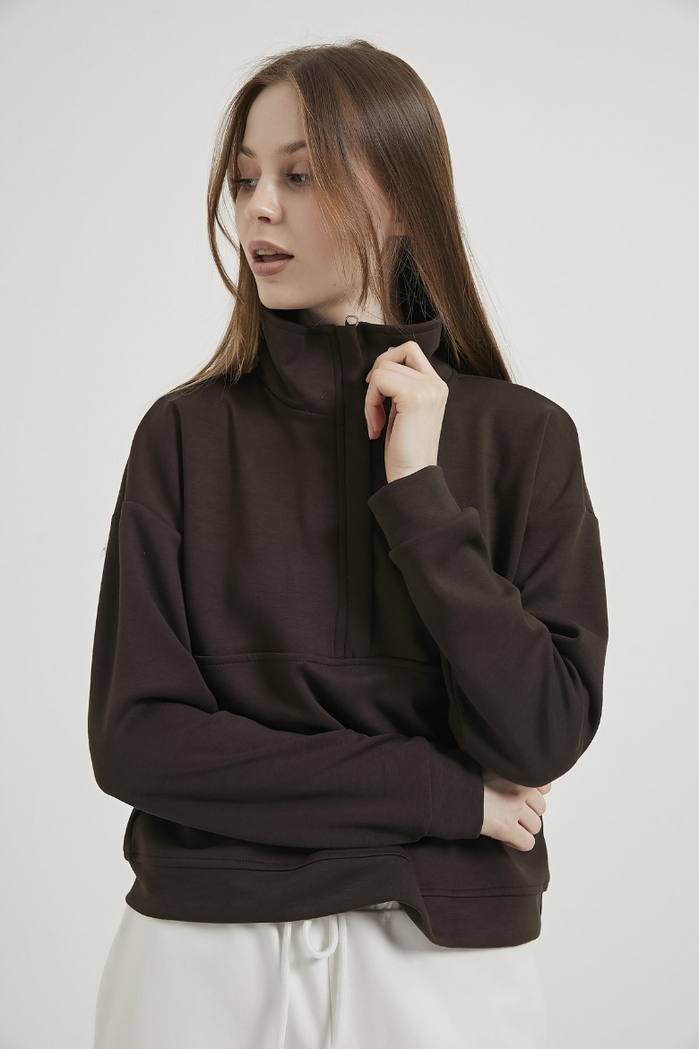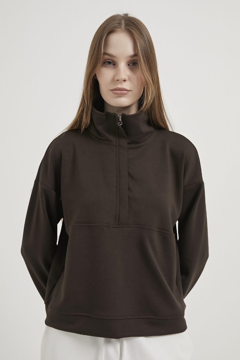 ARMALIFE 1703 PREMIUM MODAL DİK YAKA FERMUAR DETAYLI KADIN SWEATSHIRT