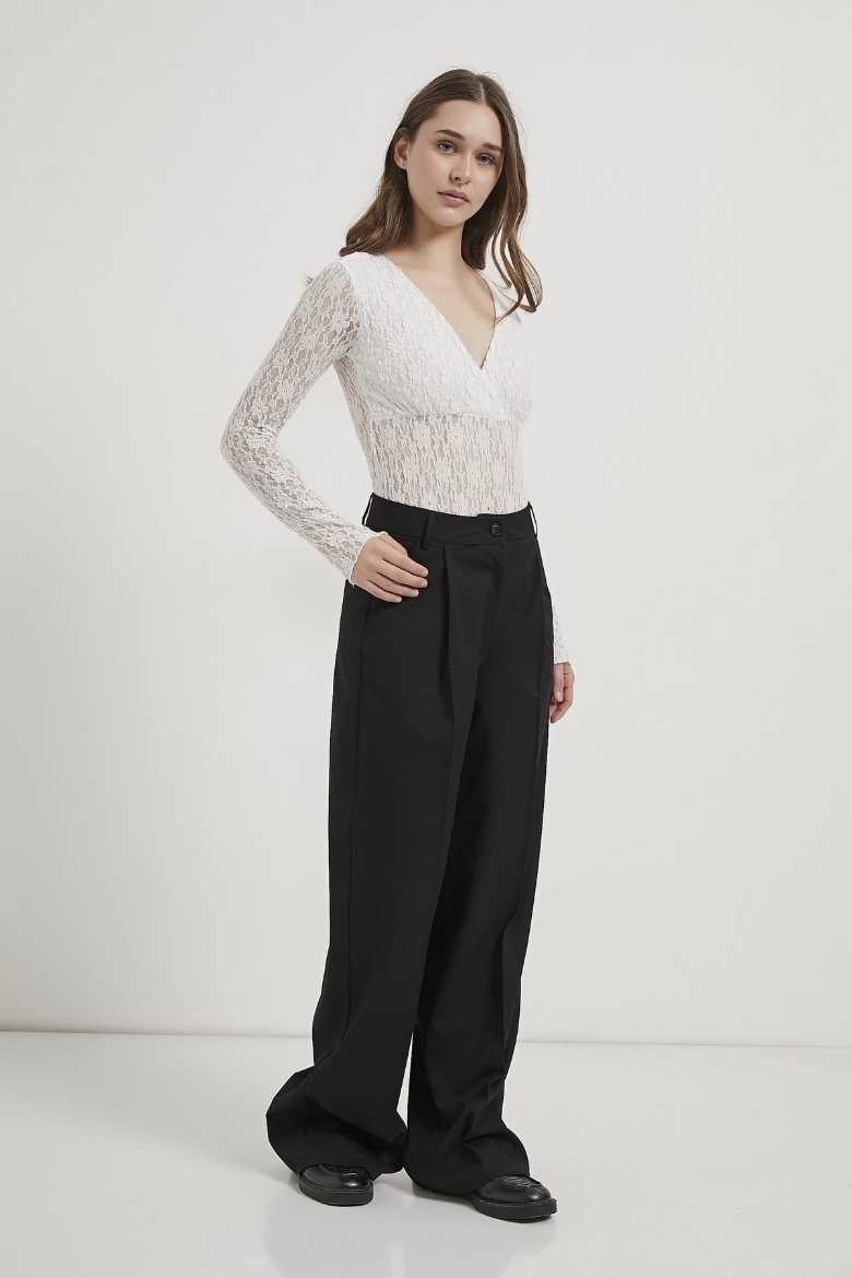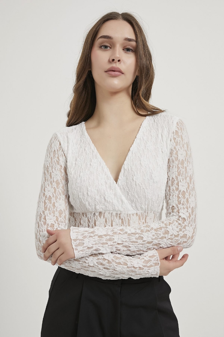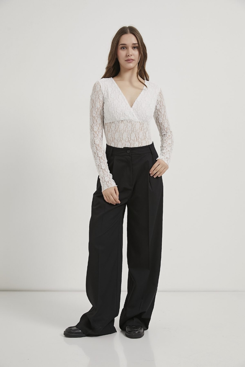 ARMALIFE 1704 KRUVAZE YAKA GÖĞSÜ ASTAR DETAYLI DANTEL TRANSPARAN KADIN BODYSUIT