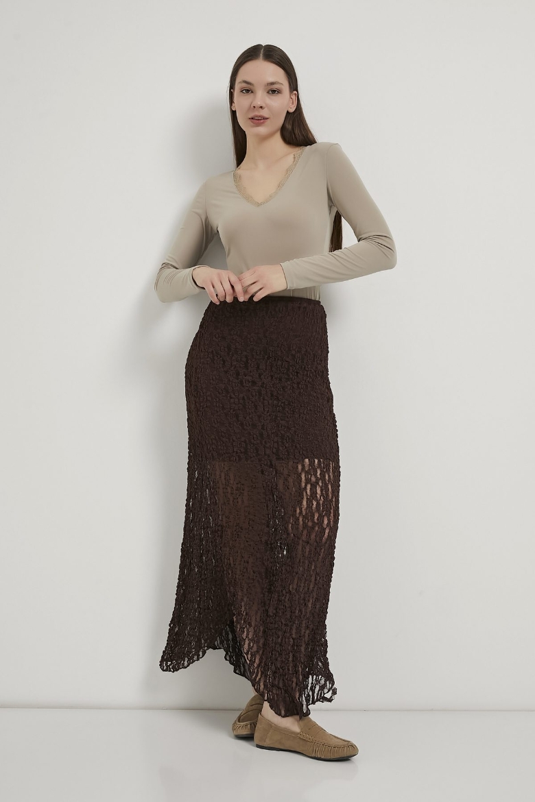 ARMALIFE 1705 V YAKA DANTEL DETAYLI ESNEK KADIN BODYSUIT