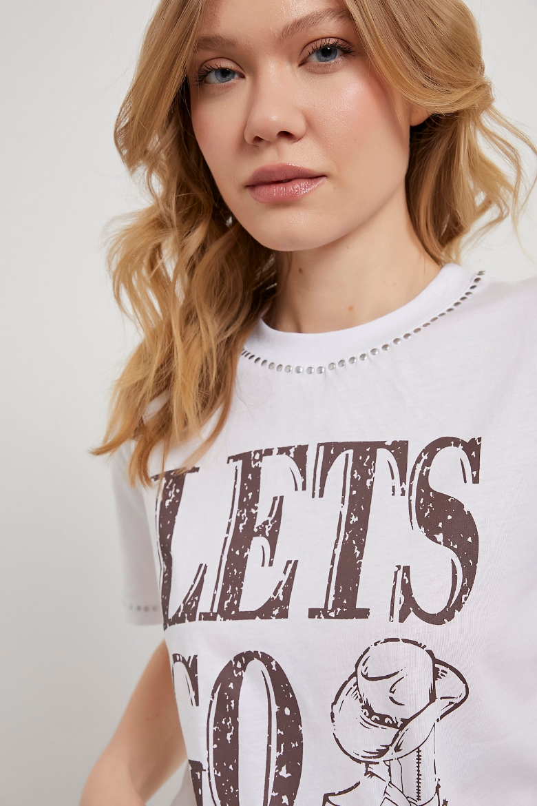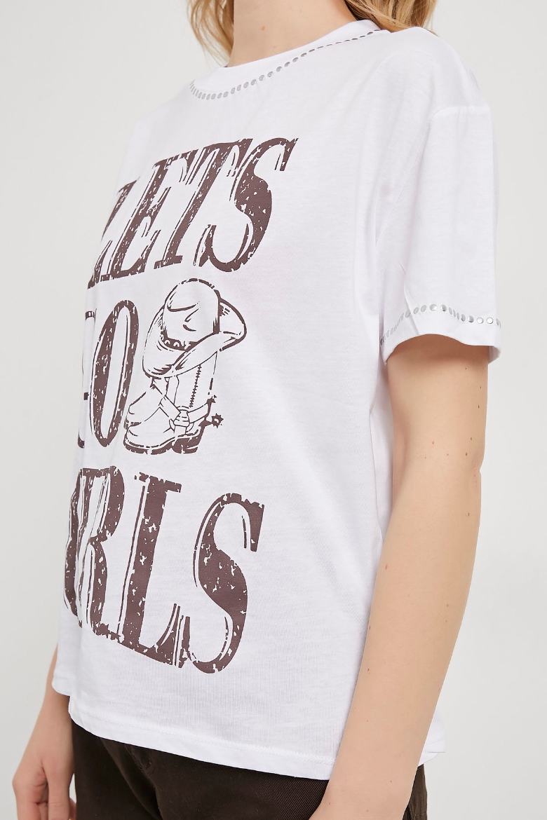 ARMALIFE 1786 WESTERN BASKILI TROK DETAYLI BİS YAKA KADIN T-SHIRT