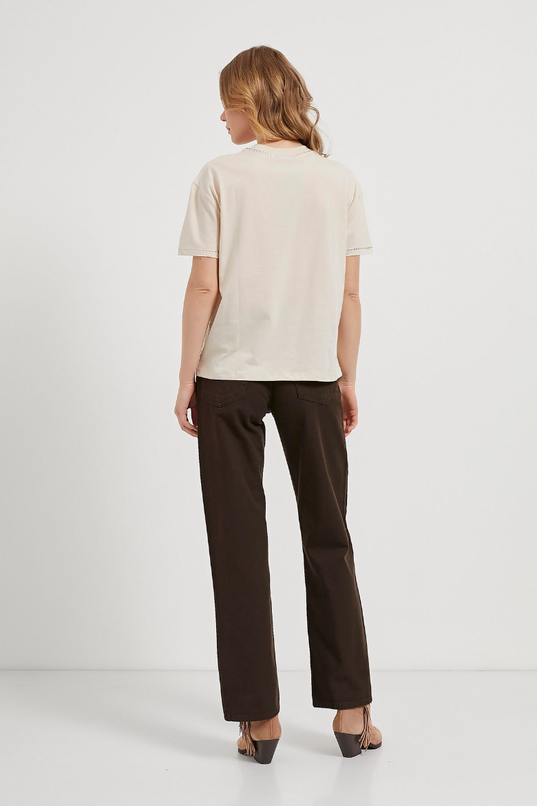 ARMALIFE 1786 WESTERN BASKILI TROK DETAYLI BİS YAKA KADIN T-SHIRT