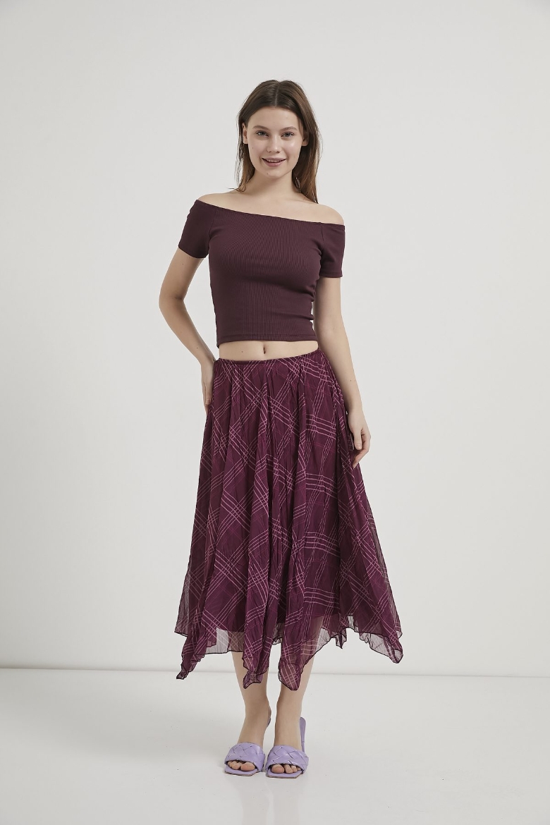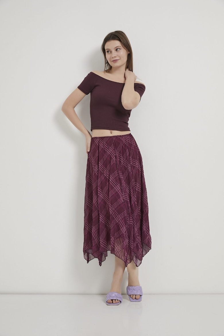 ARMALIFE 1800 DÖKÜMLÜ ÇİZGİ DETAYLI ŞİFON KADIN ETEK