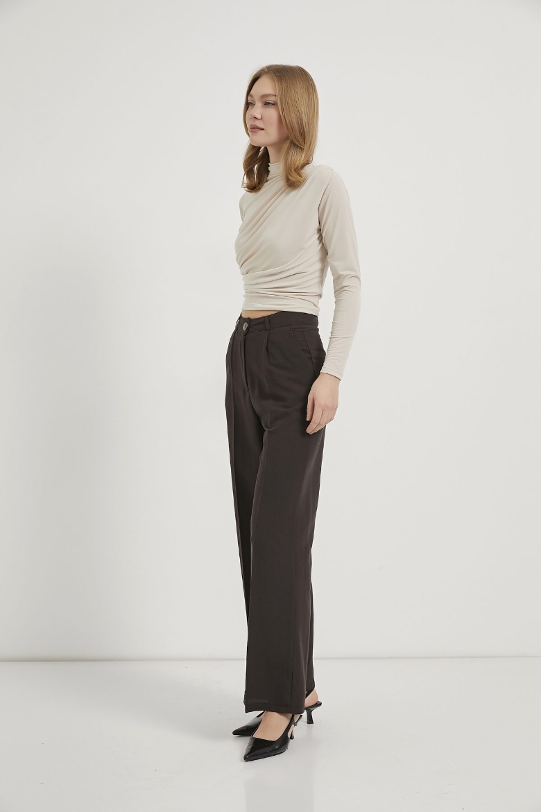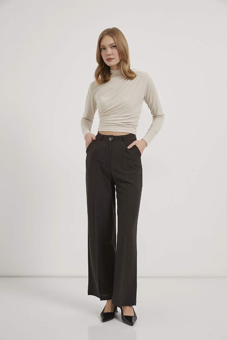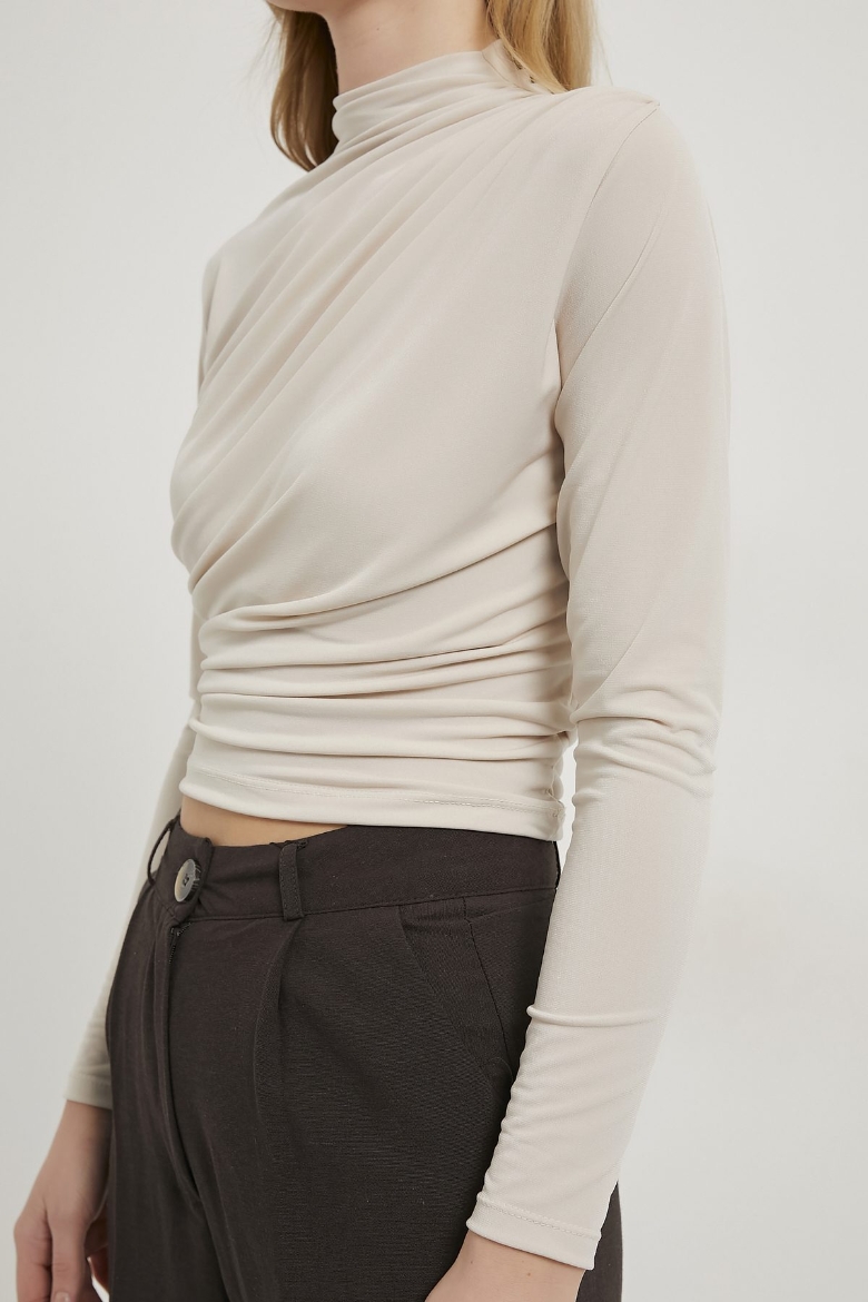 ARMALIFE 1806 DİK YAKA DRAPELİ ESNEK KADIN BLUZ