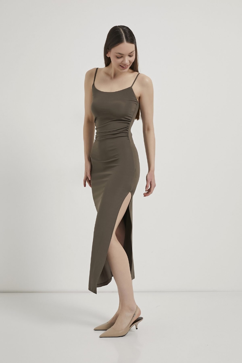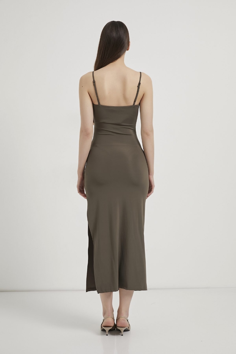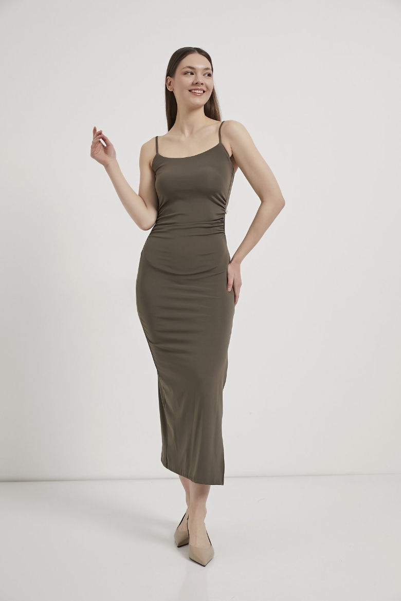 ARMALIFE 1810 YANI BÜZGÜLÜ YIRTMAÇ DETAYLI AYARLANABİLİR ASKILI ESNEK MAXI KADIN ELBİSE