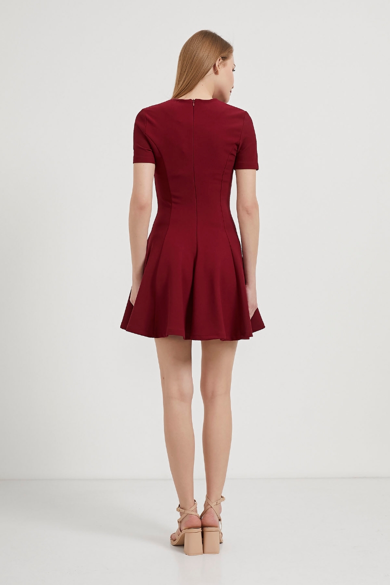ARMALIFE 1847 ETEĞİ VOLANLI KISA KOL ESNEK MİNİ KADIN ELBİSE