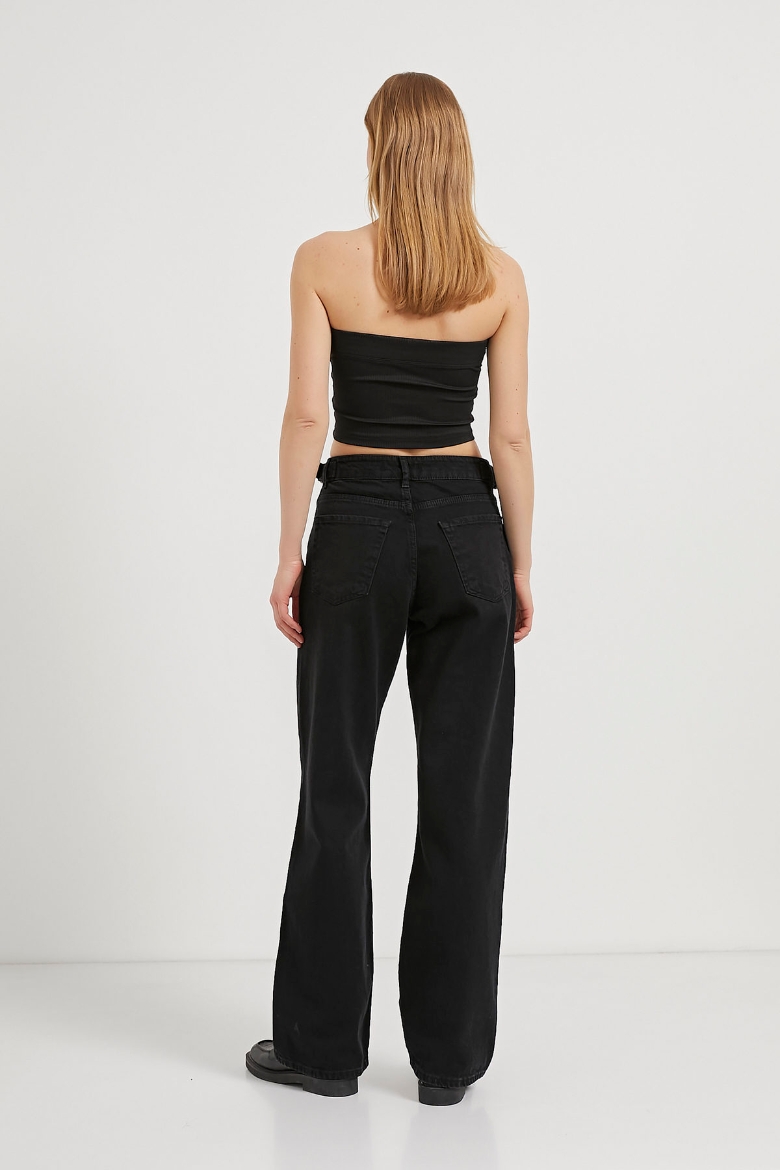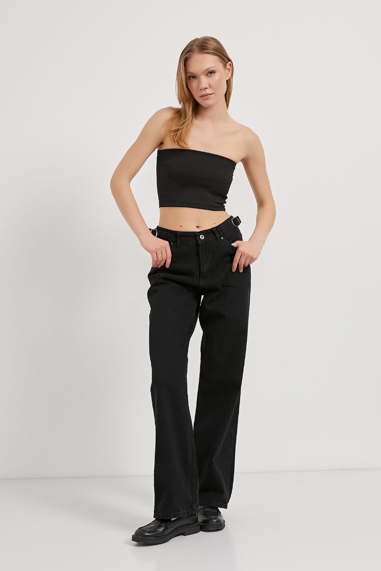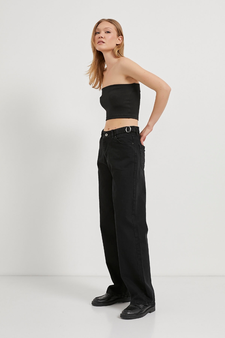 ARMALIFE 2009 YANI KEMERLİ STRAIGHT FIT YÜKSEK BEL KADIN DENİM PANTOLON