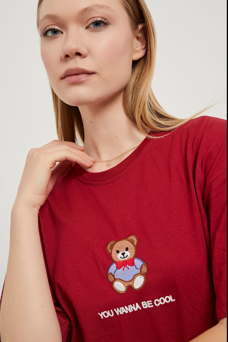 ARMALIFE 2102 AYICIK NAKIŞLI BİS YAKA OVERSIZE KADIN T-SHIRT
