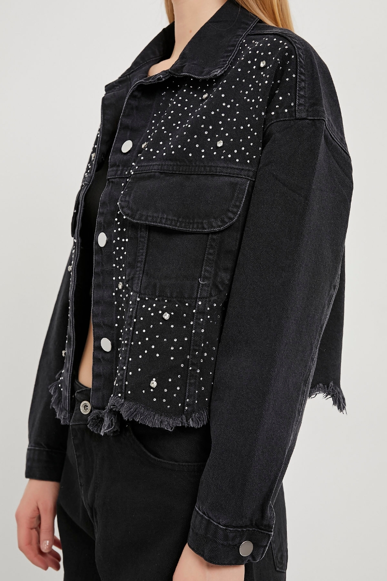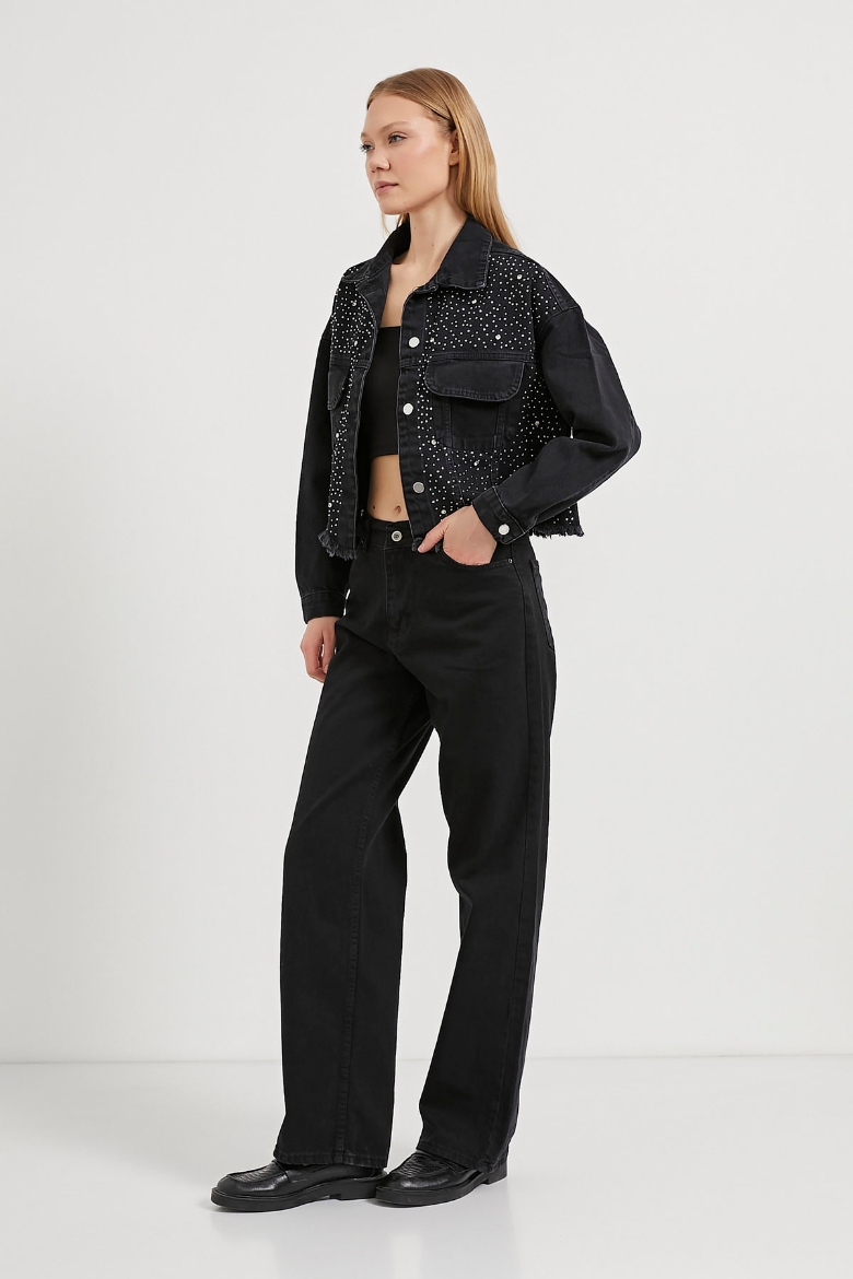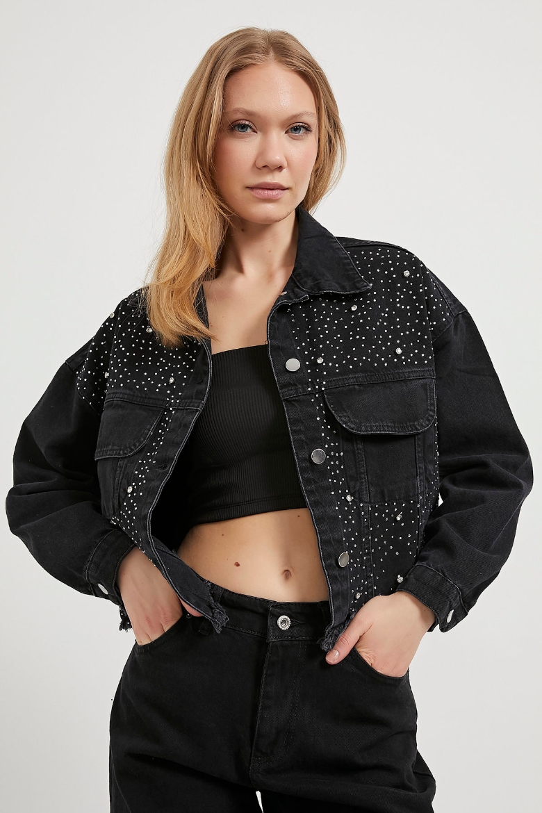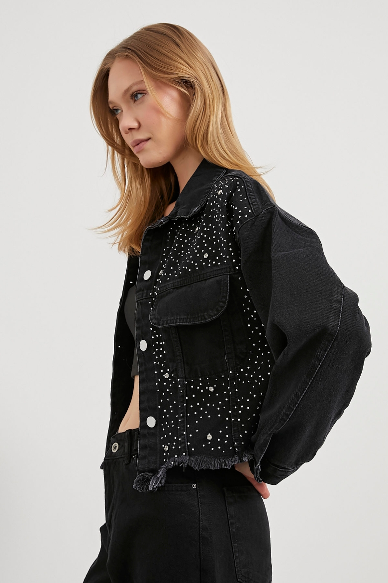 ARMALIFE 2103 PARLAK TAŞ DETAYLI ETEĞİ PİS DENİM KADIN CEKET