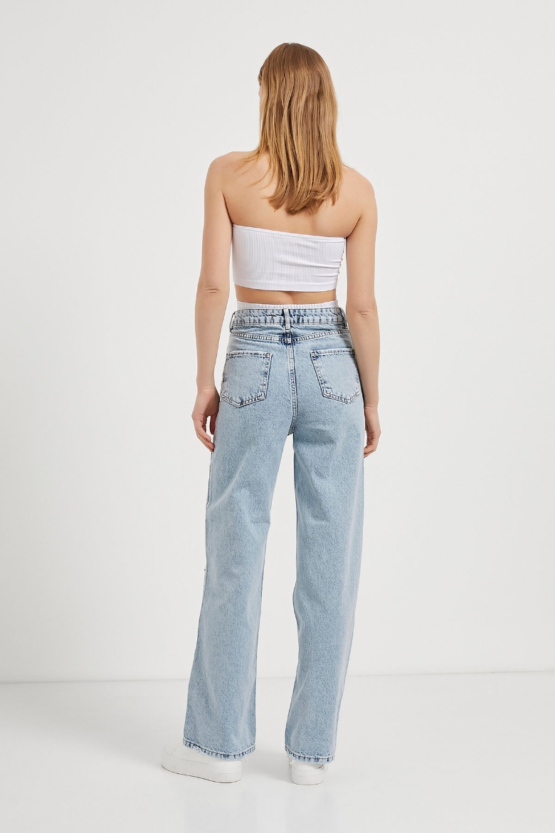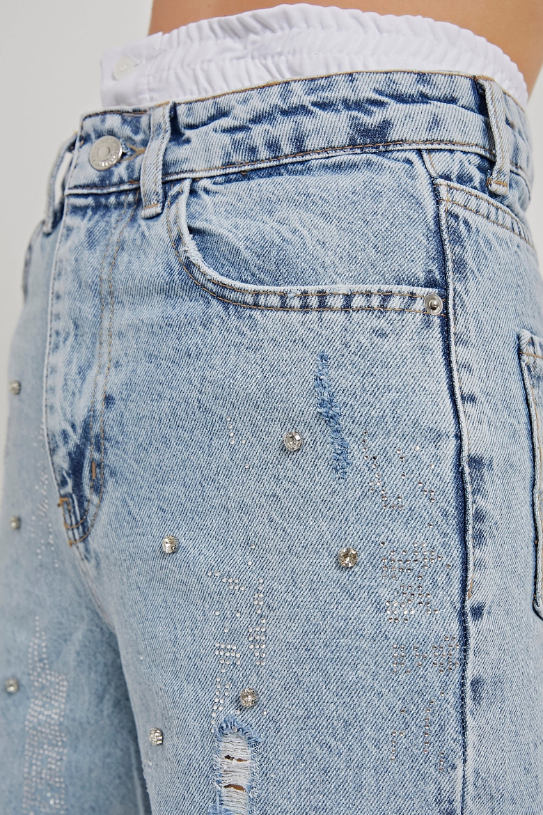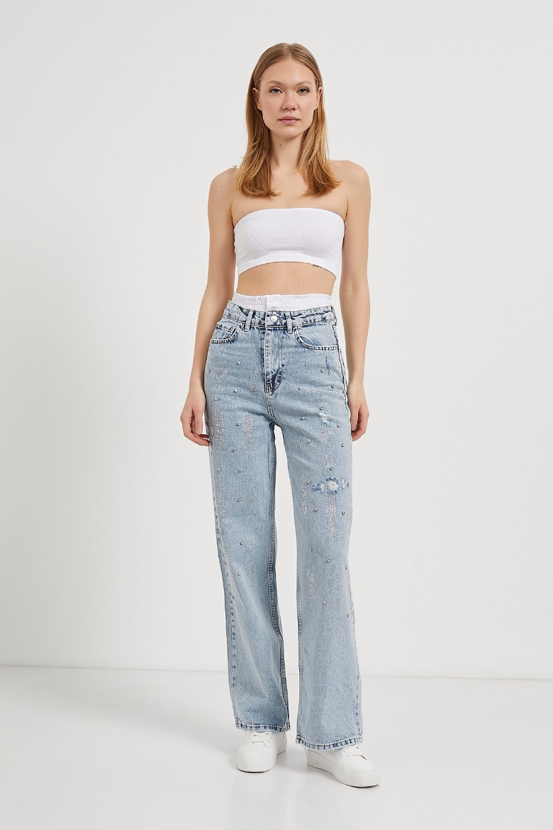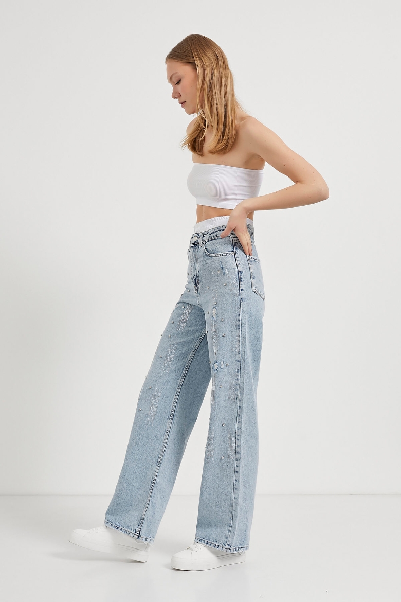 ARMALIFE 2104 GARNİ DETAYLI SERPME TAŞLI DENİM KADIN PANTOLON