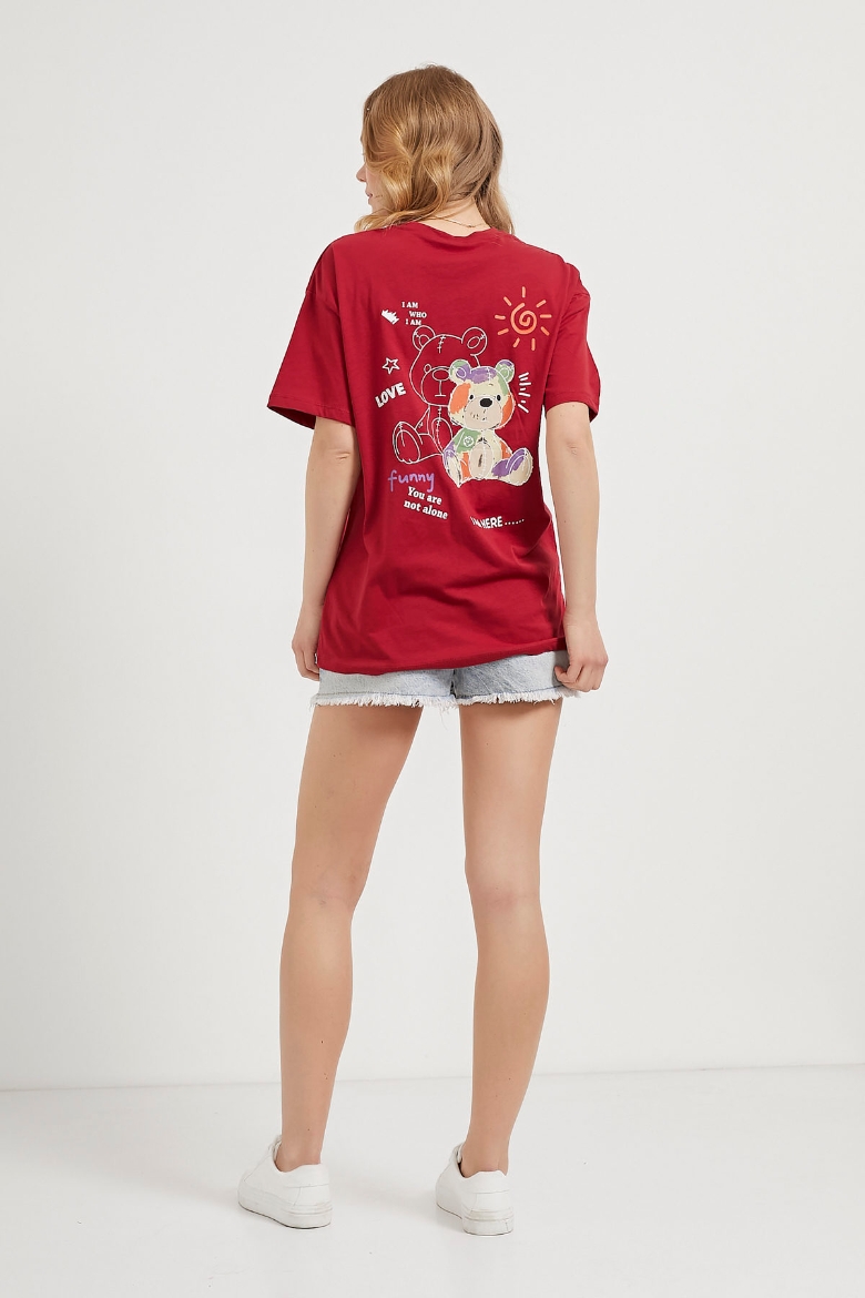 ARMALIFE 2119 AYICIK ÖN ARKA BASKILI BİS YAKA OVERSIZE KADIN T-SHIRT