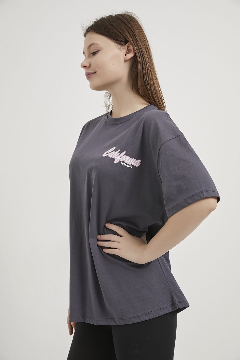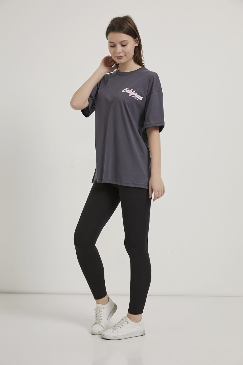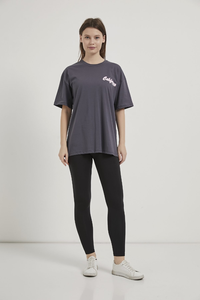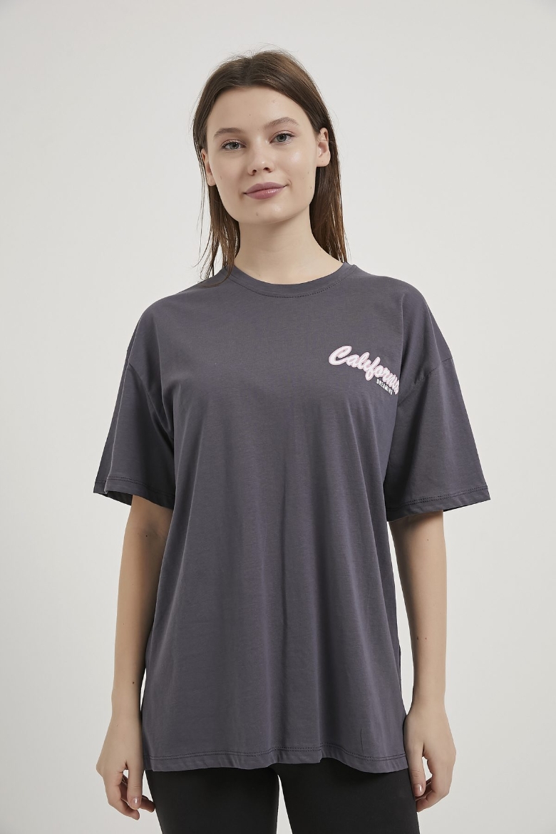 ARMALIFE 2166 ÖN ARKA BASKILI PALMİYE TEMALI BİS YAKA KADIN T-SHIRT