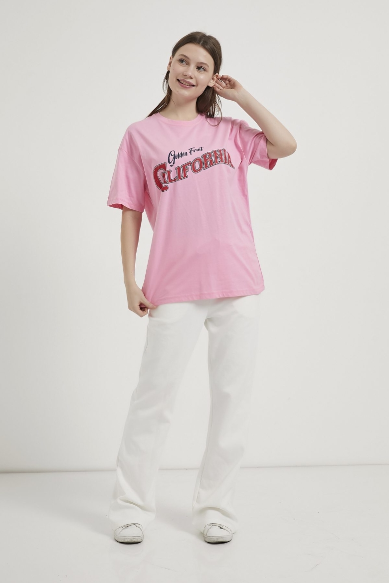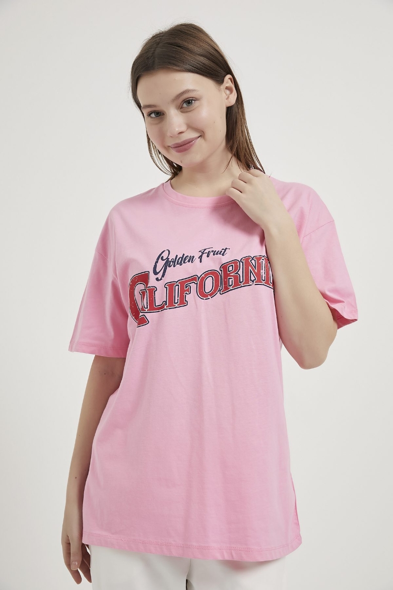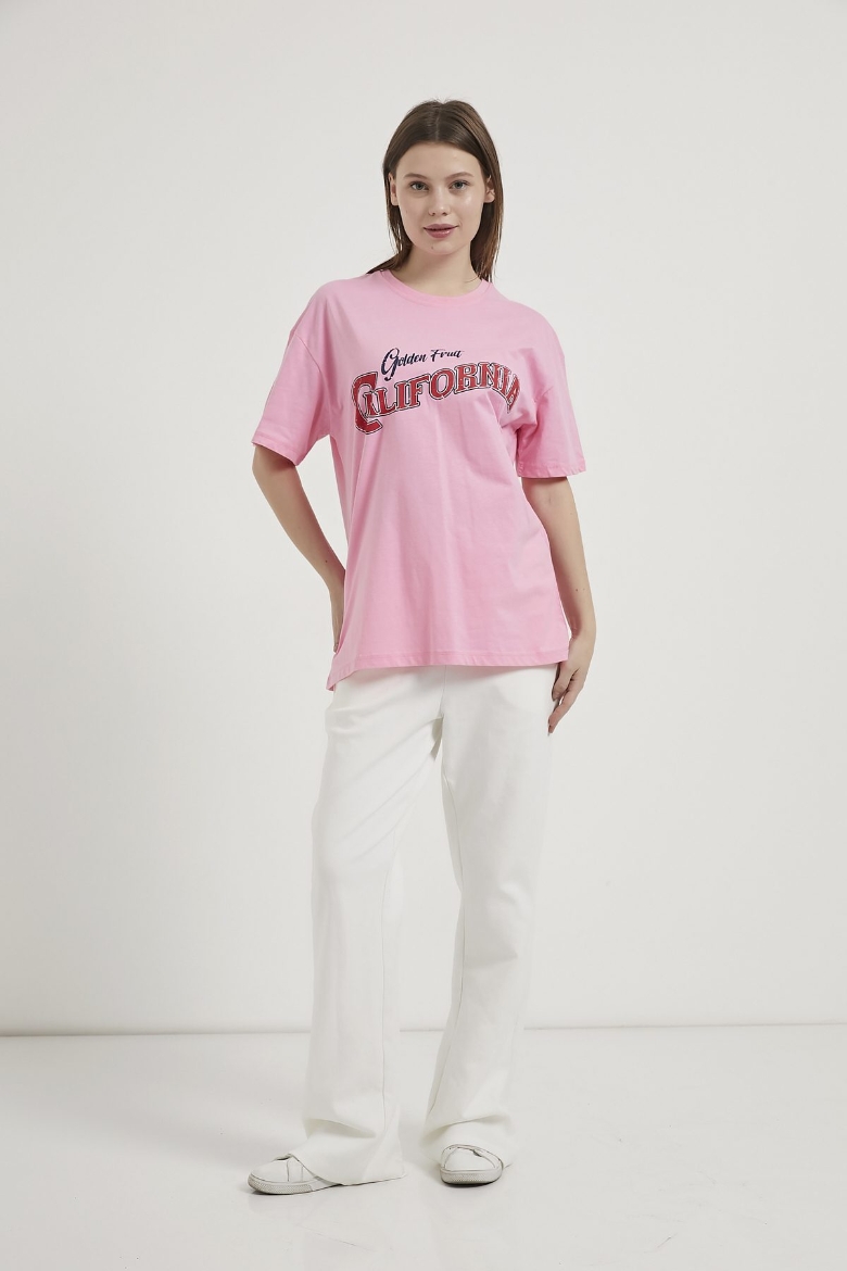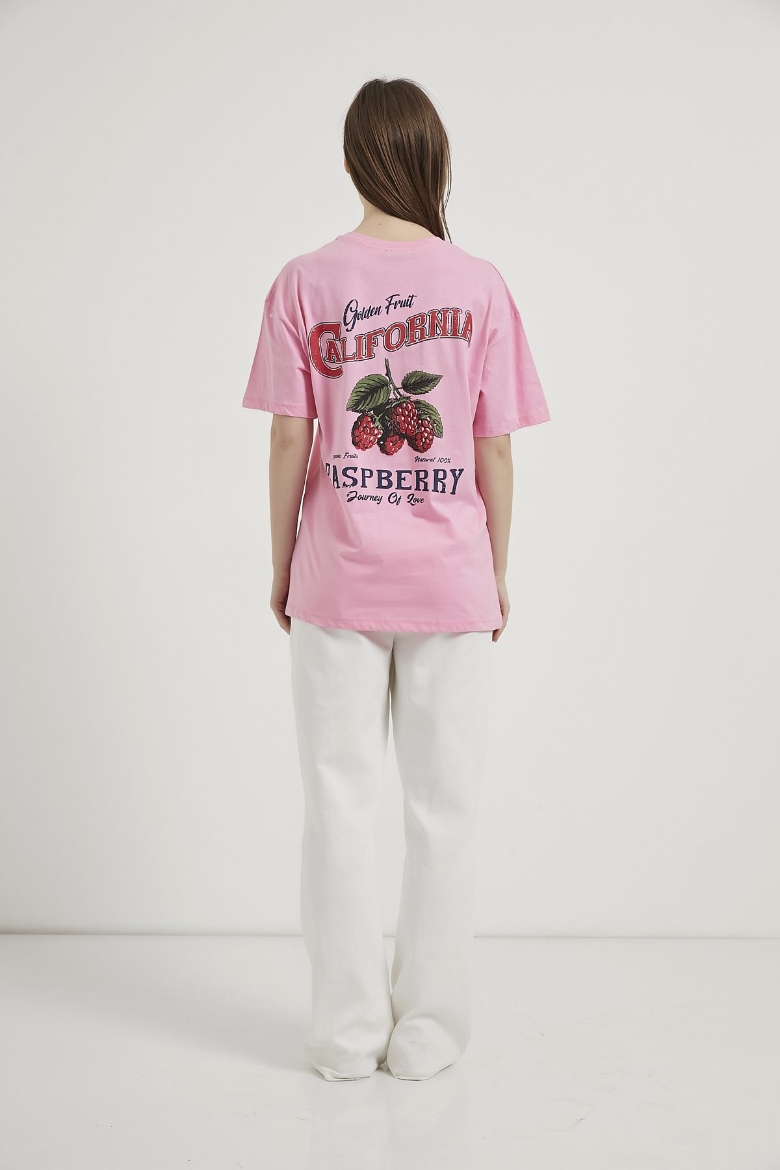 ARMALIFE 2184 ÖN ARKA BASKILI ÇİLEK TEMALI BİS YAKA KADIN T-SHIRT