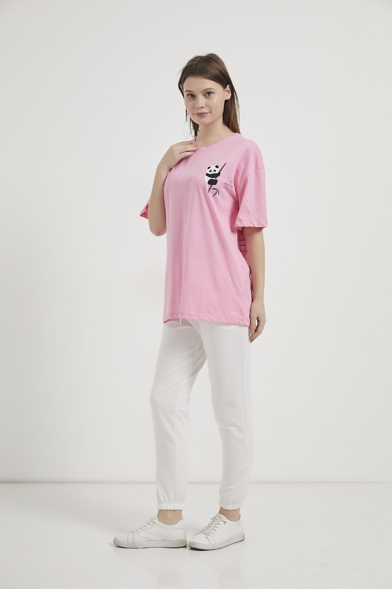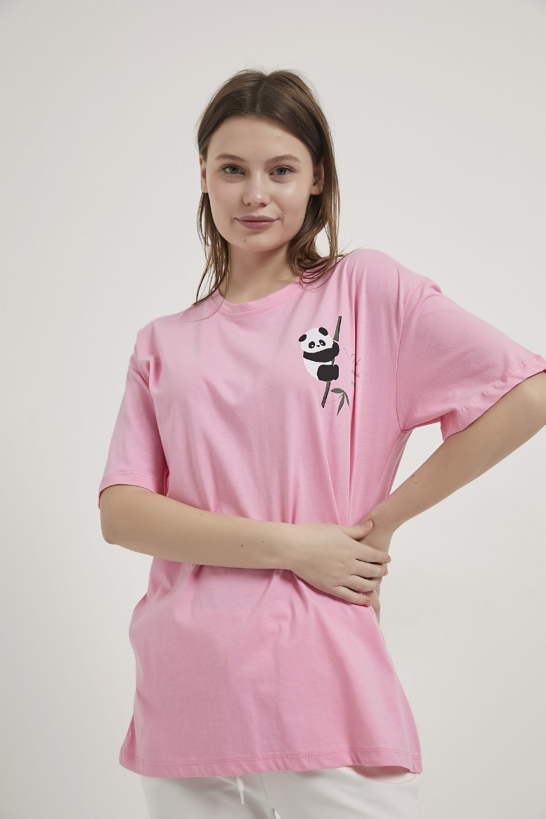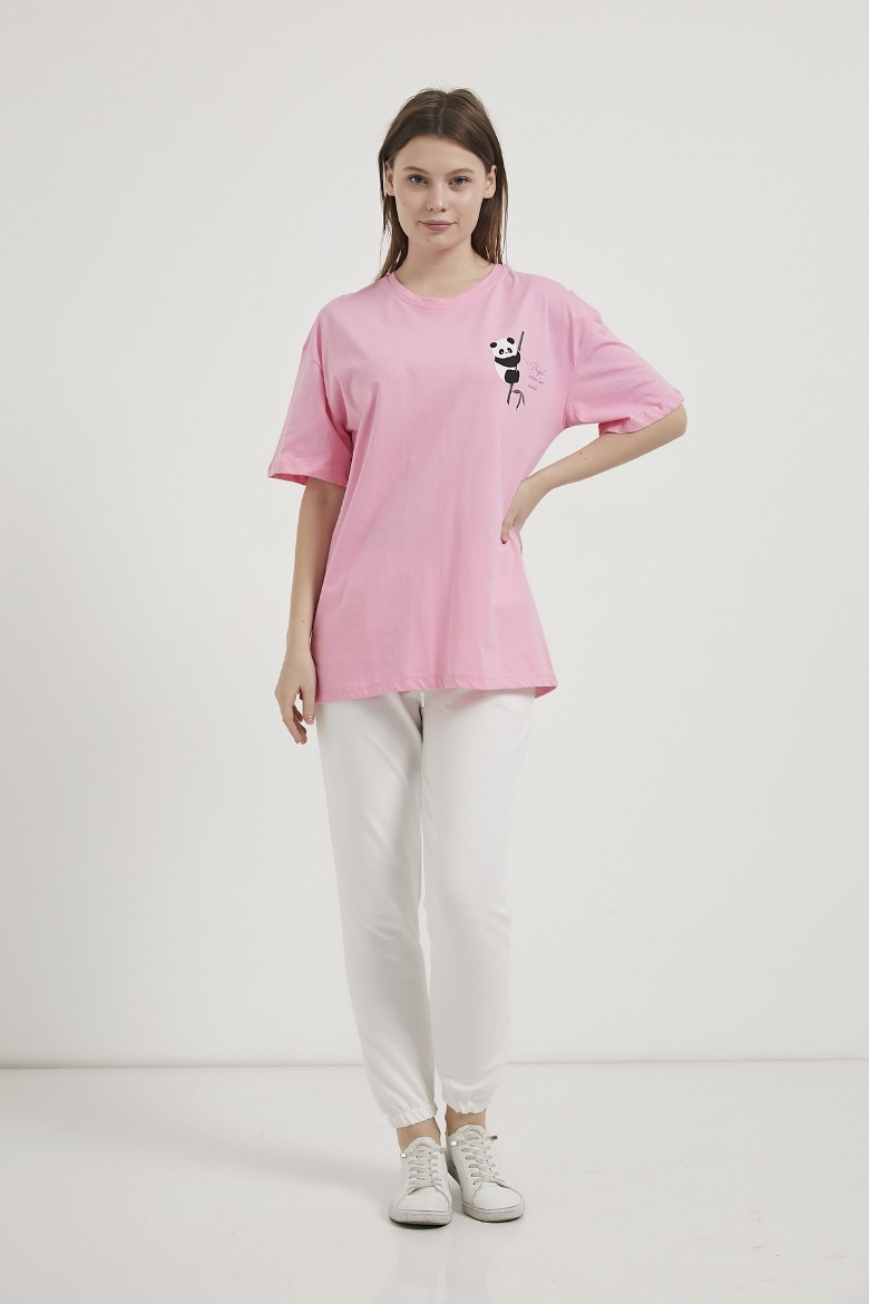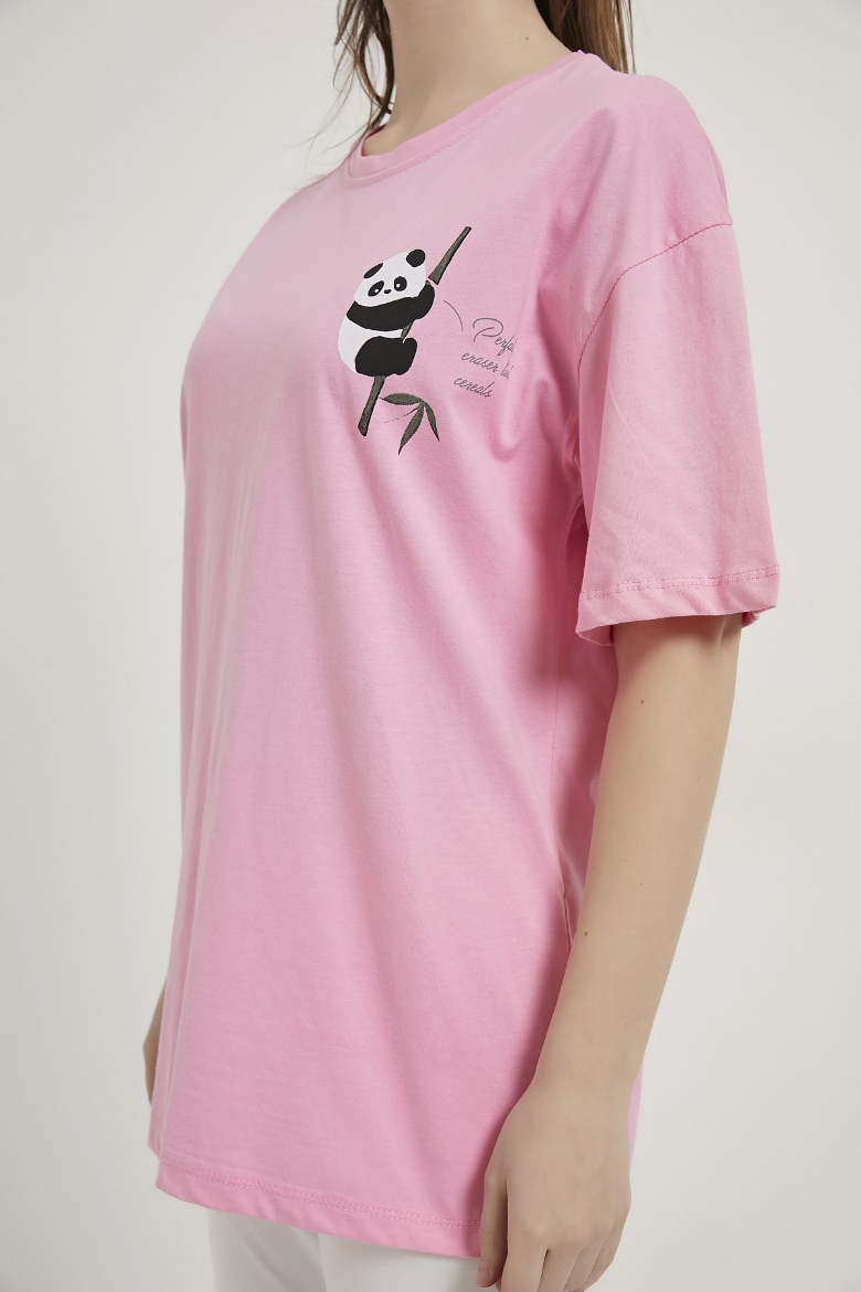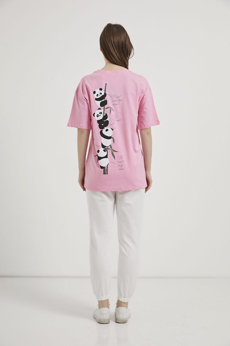 ARMALIFE 2292 PANDA TEMALI ÖN ARKA BASKILI BİS YAKA KADIN T-SHIRT