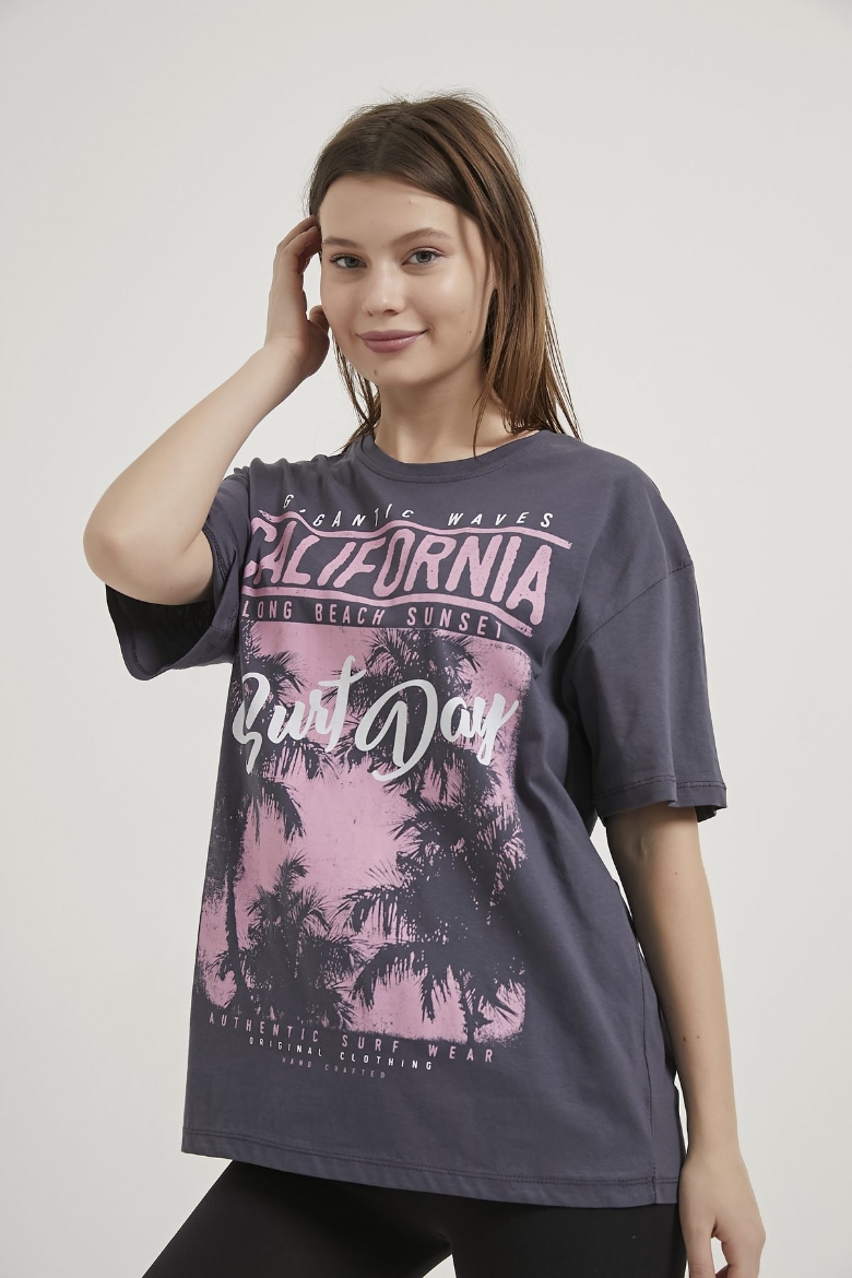 ARMALIFE 2298 BIS YAKA CALIFORNIA BASKILI KADIN T-SHIRT