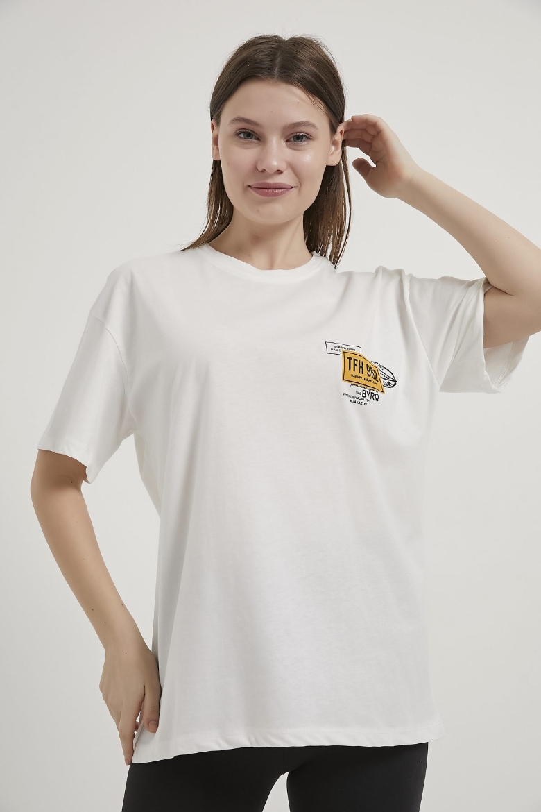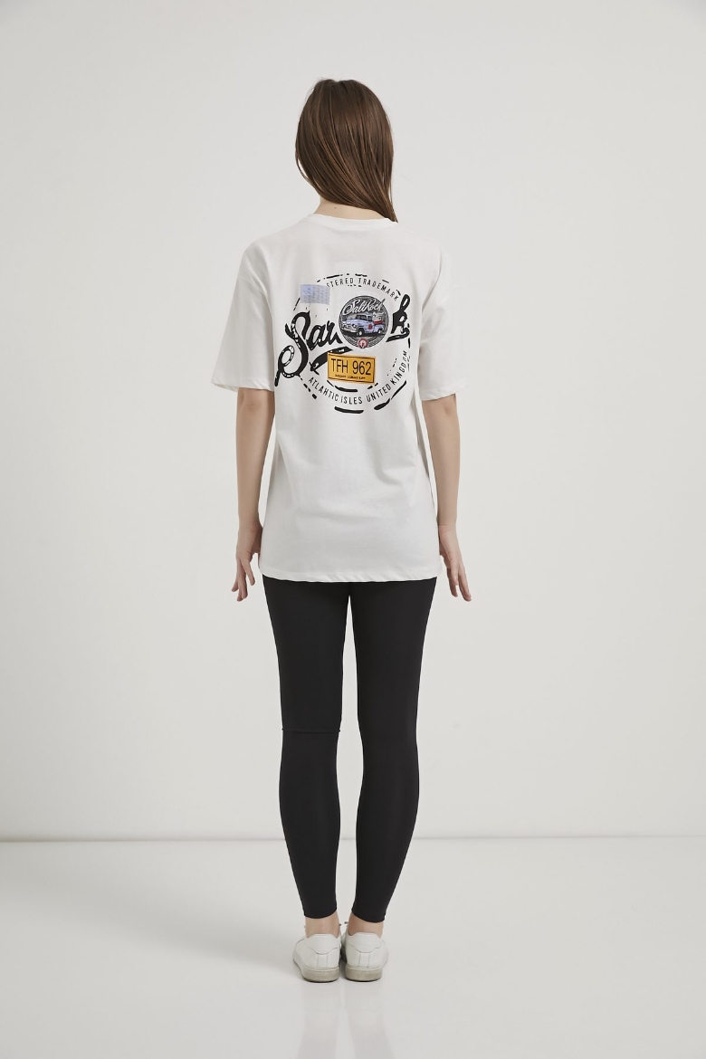 ARMALIFE 2300 ÖN ARKA BASKILI ARABA TEMALI BİS YAKA KADIN T-SHIRT