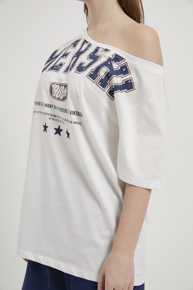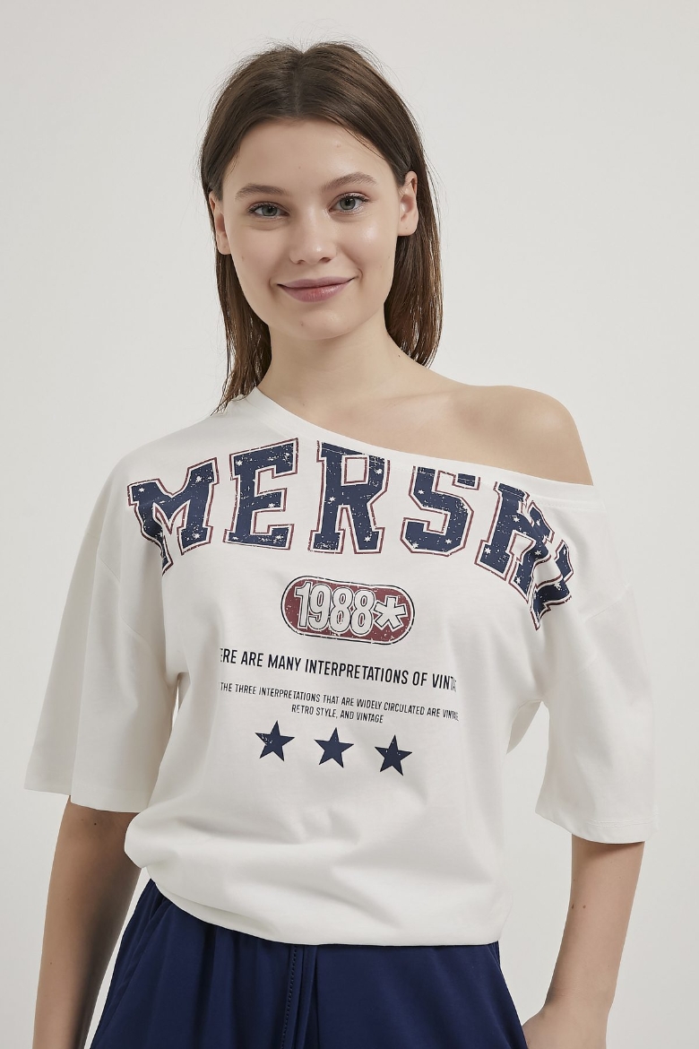 ARMALIFE 2315 DÜŞÜK OMUZ YAZI BASKILI KADIN T-SHIRT