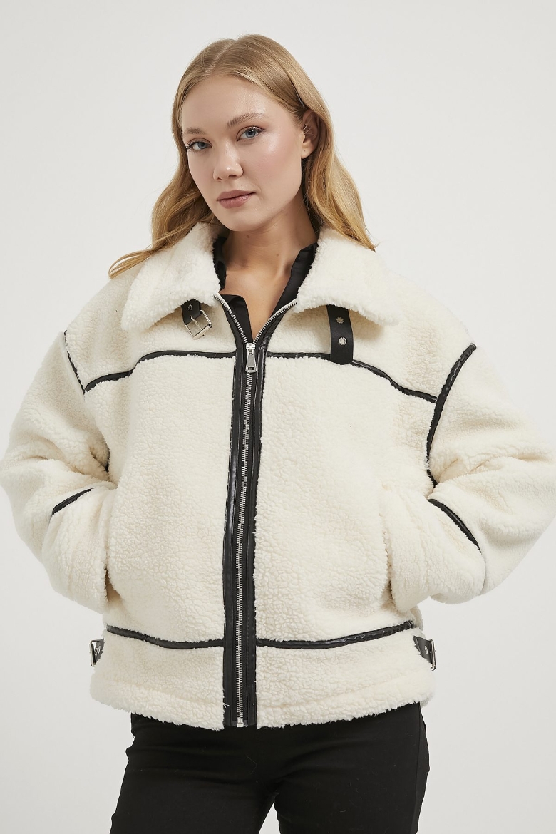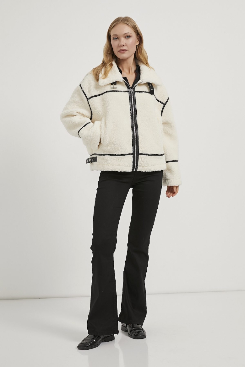 ARMALIFE 2370 GARNİLİ PELUŞ DİK YAKA KADIN KABAN