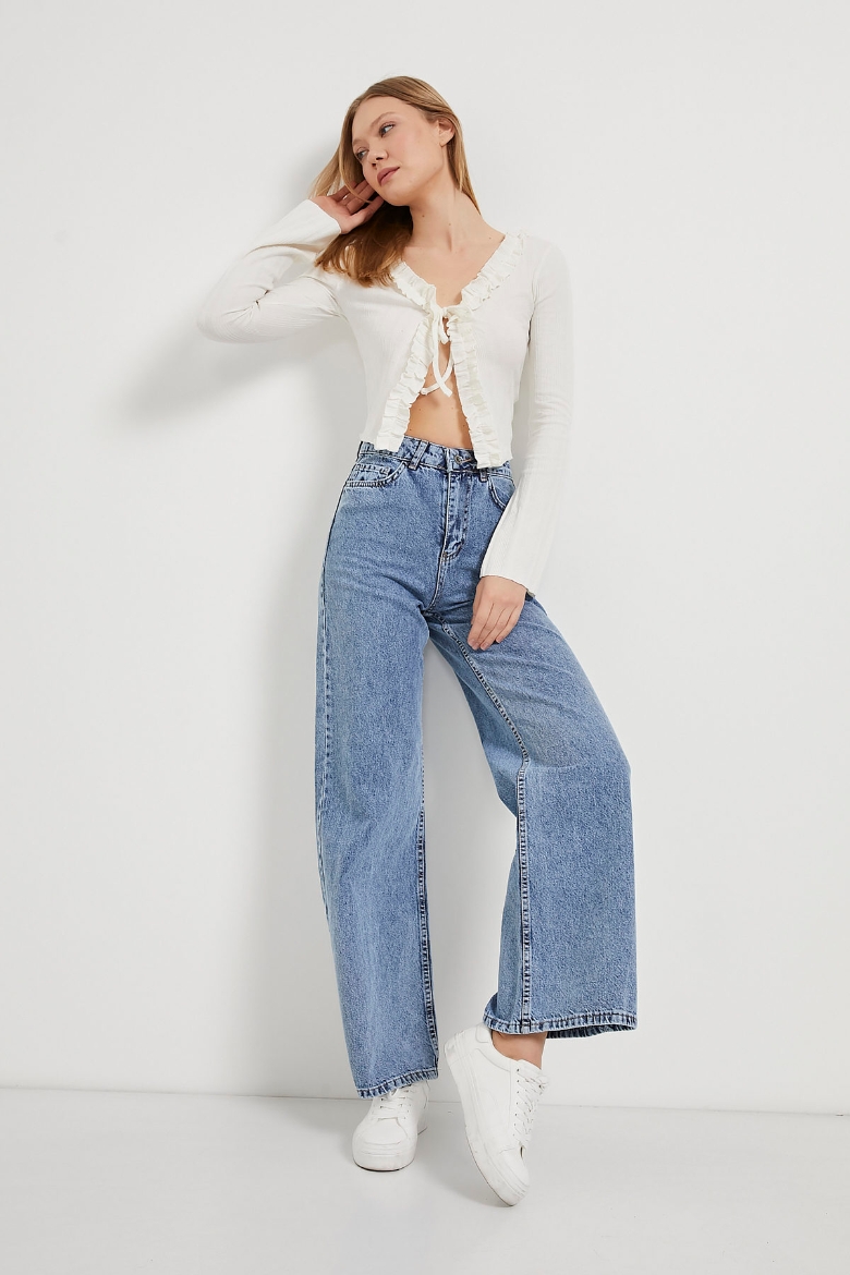 ARMALIFE 2403 YÜKSEK BEL GENİŞ PAÇA DENİM KADIN PANTOLON