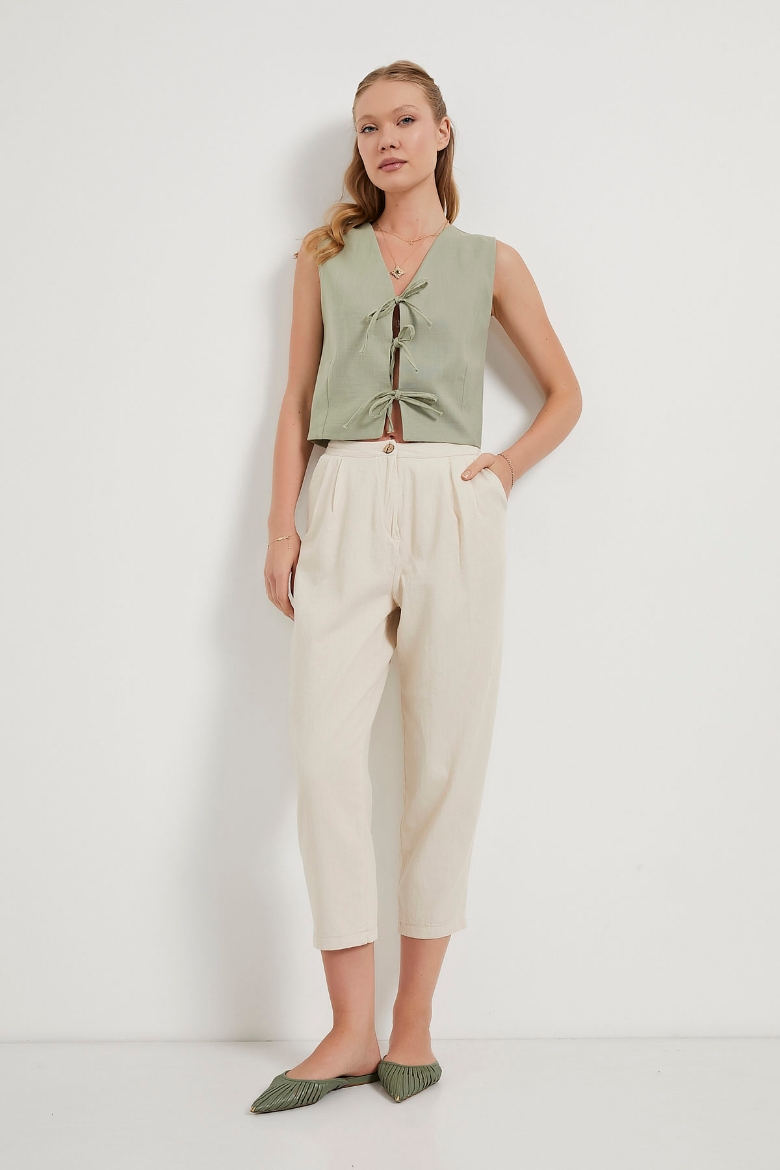 ARMALIFE 2424 KETEN GÖRÜNÜMLÜ HAVUÇ FİT KADIN PANTOLON