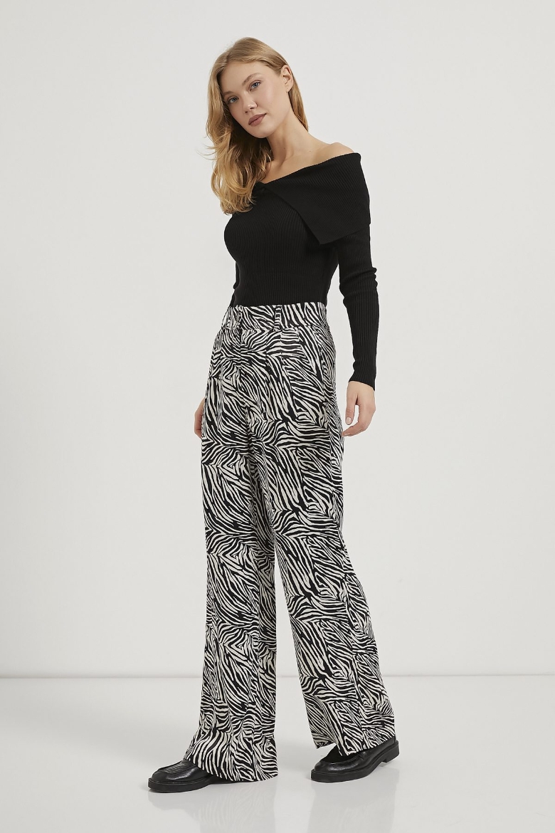 ARMALIFE 2449 CEP DETAYLI DESENLİ SATEN KADIN PANTOLON