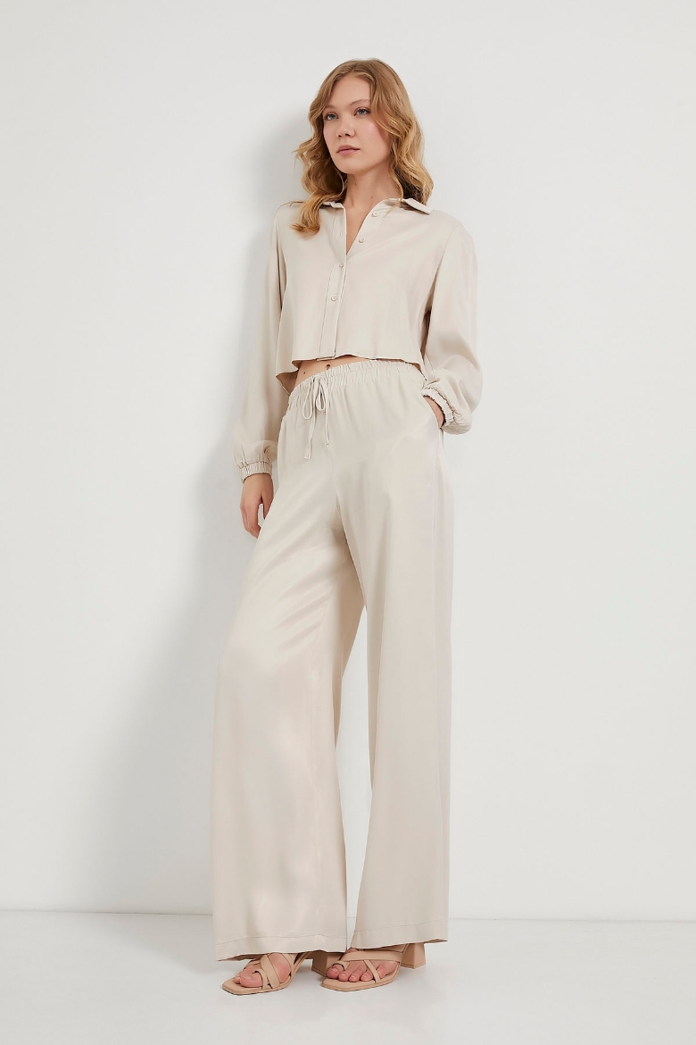 ARMALIFE 2467 BELİ LASTİKLİ SATEN DOKULU KADIN PANTOLON