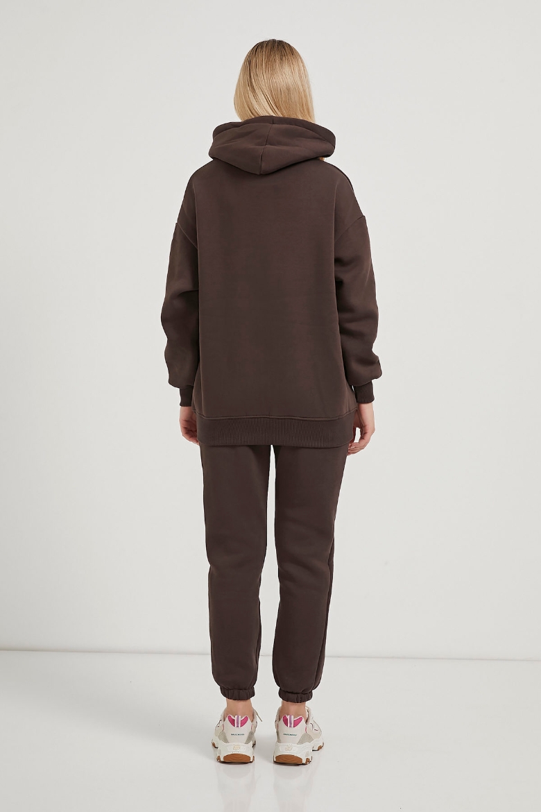 ARMALIFE 2501 FERMUARLI KAPŞONLU OVERSIZE ÜÇİPLİK ŞARDONLU KADIN SWEAT
