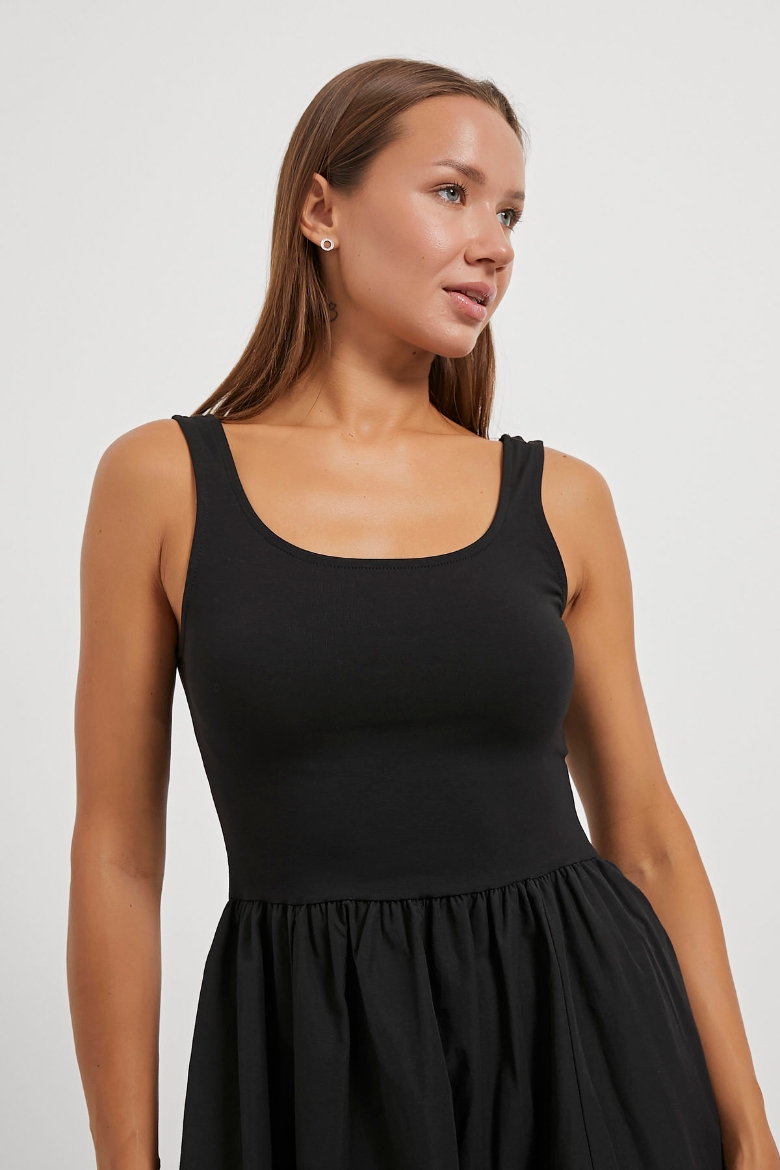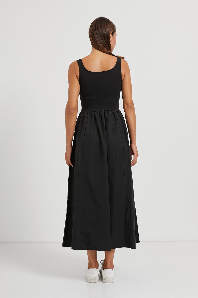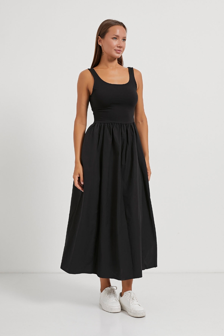 ARMALIFE 25117-1 KLOŞ DOKUMA ETEKLİ CEPLİ KARE YAKA MAXI KADIN ELBİSE
