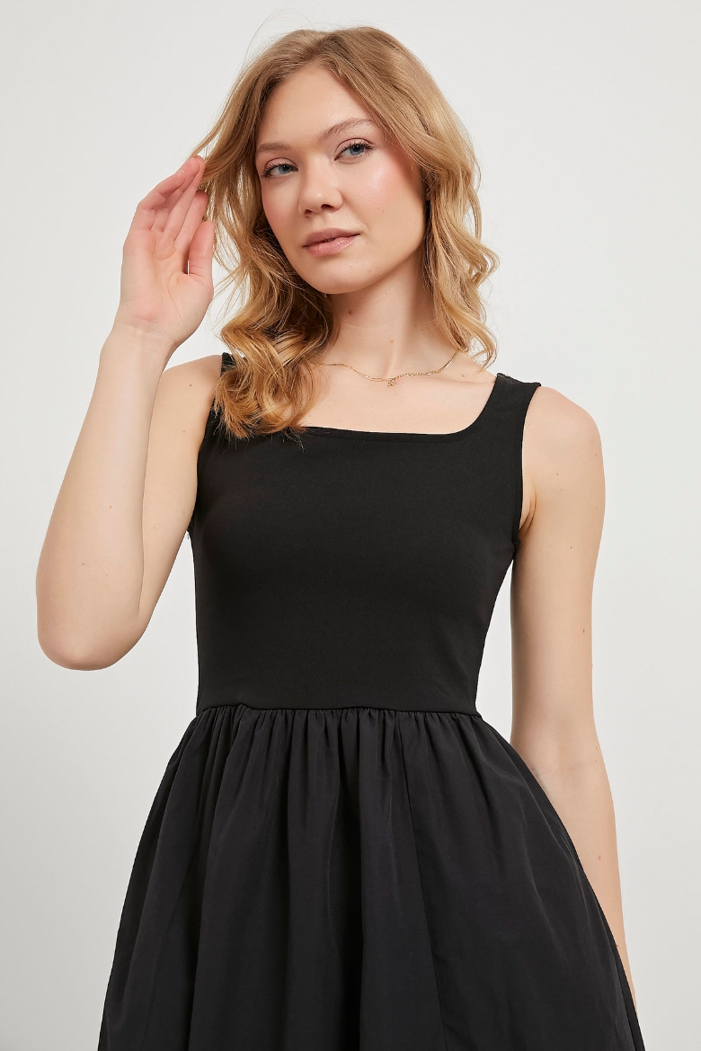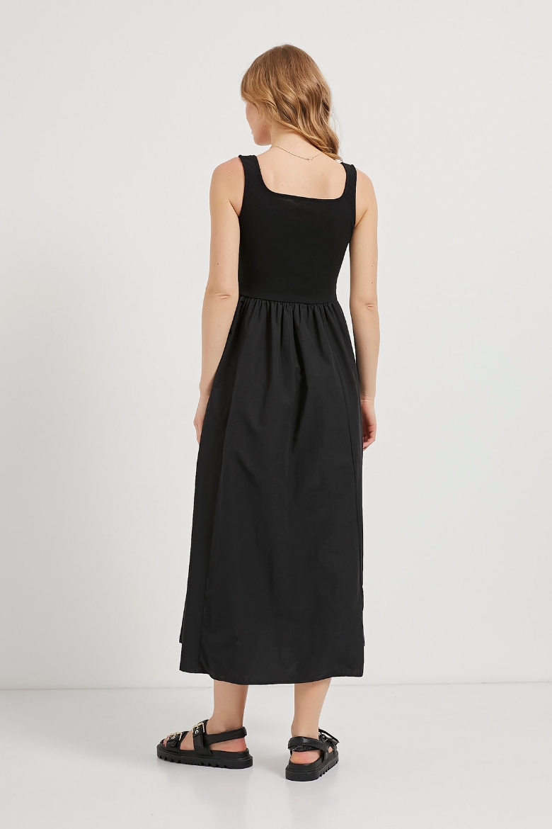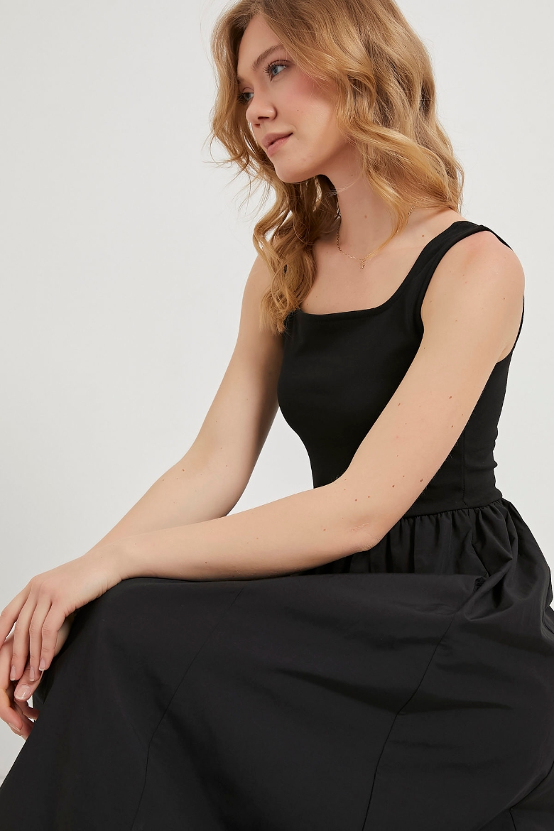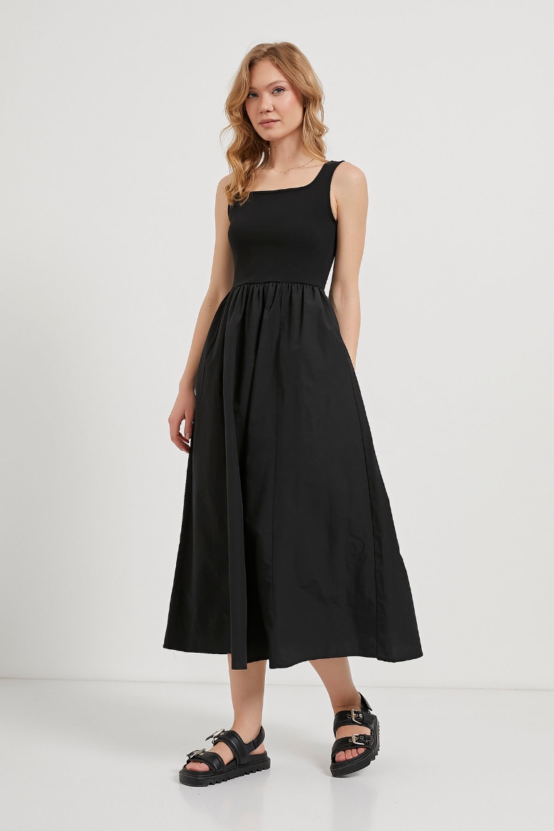 ARMALIFE 25117 KLOŞ DOKUMA ETEKLİ CEPLİ KARE YAKA MAXI KADIN ELBİSE