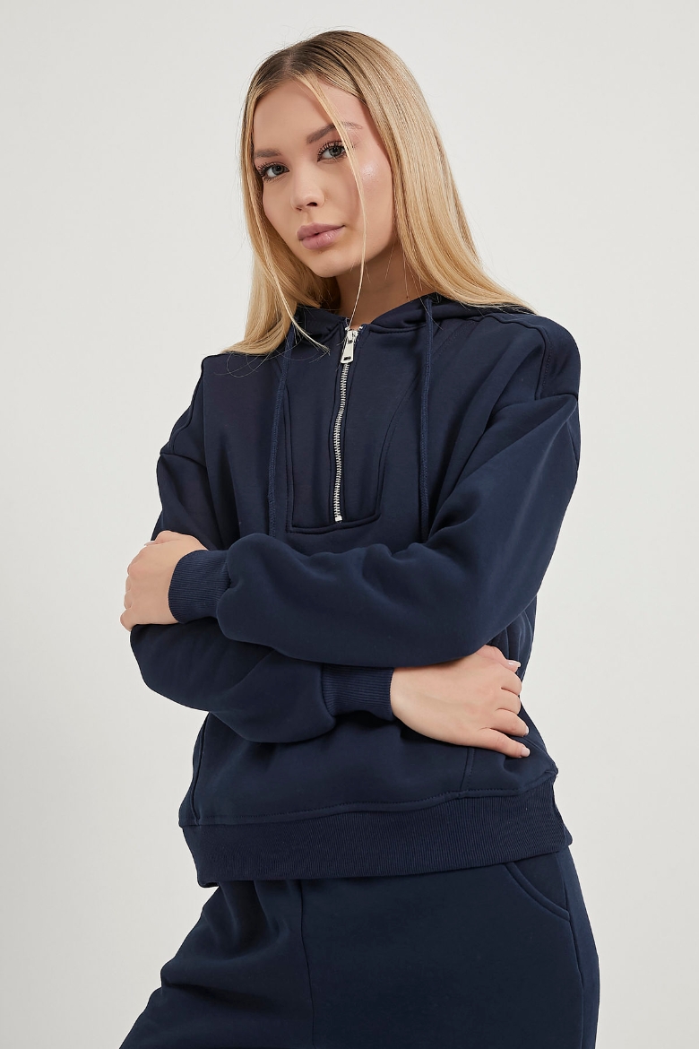 ARMALIFE 25135 YAKASI FERMUARLI ŞARDONLU KAPŞONLU KADIN SWEAT