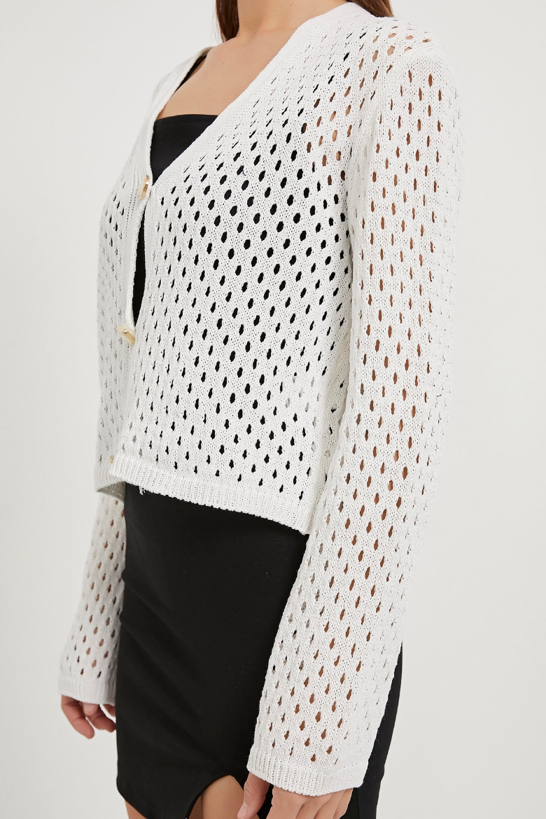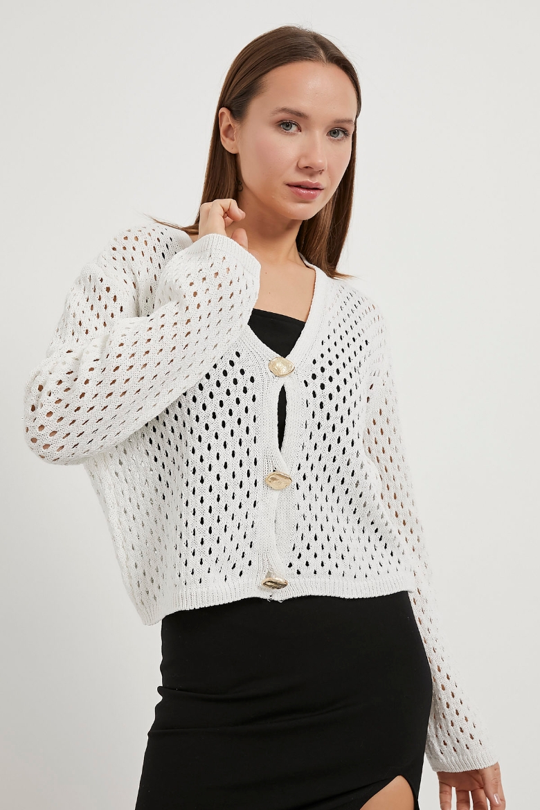 ARMALIFE 2521 GOLD DÜĞME DETAYLI AJURLU TRİKO KADIN HIRKA