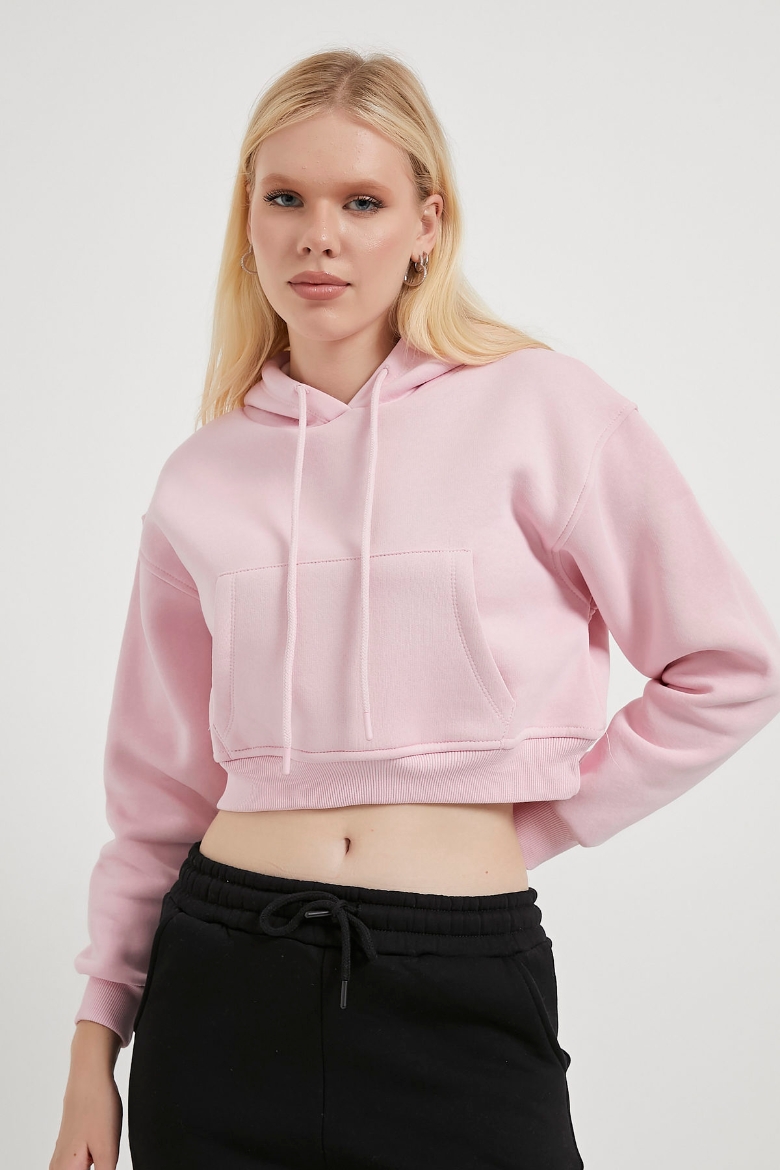 ARMALIFE 2525 KANGURU CEP ŞARDONLU CROP KADIN SWEAT