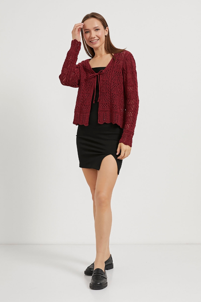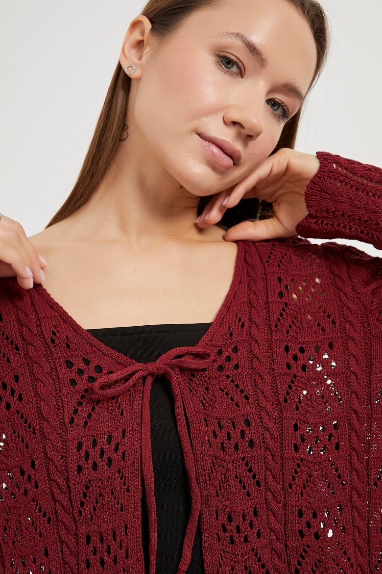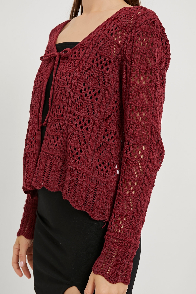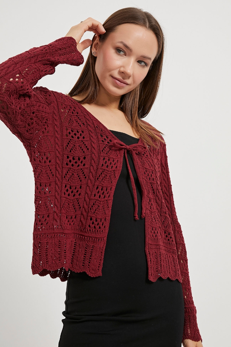 ARMALIFE 2550 BAĞLAMA DETAYLI AJURLU TRİKO KADIN HIRKA