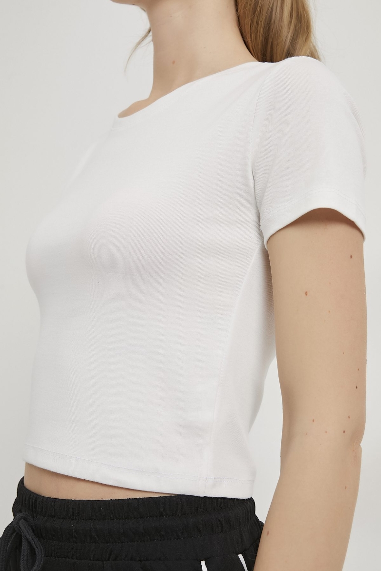 ARMALIFE 25511 BİS YAKA ESNEK CROP KADIN T-SHIRT