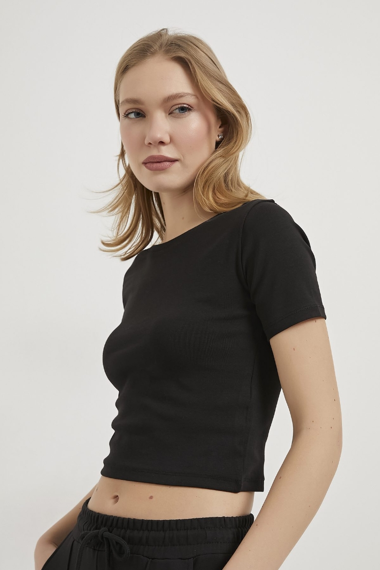 ARMALIFE 25511 BİS YAKA ESNEK CROP KADIN T-SHIRT