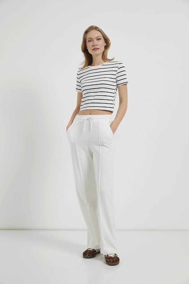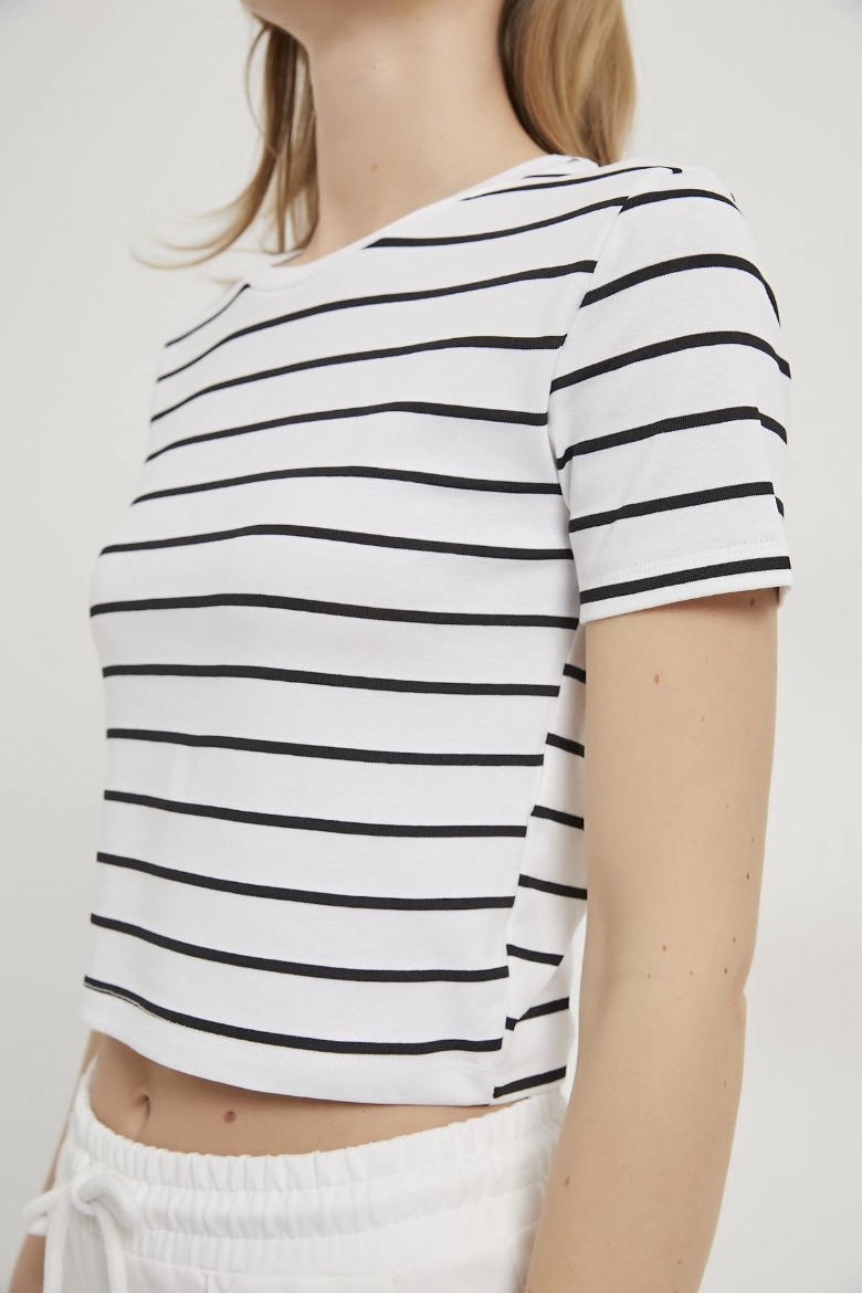 ARMALIFE 25512 ÇİZGİLİ ESNEK CROP BİS. YK. KADIN T-SHIRT