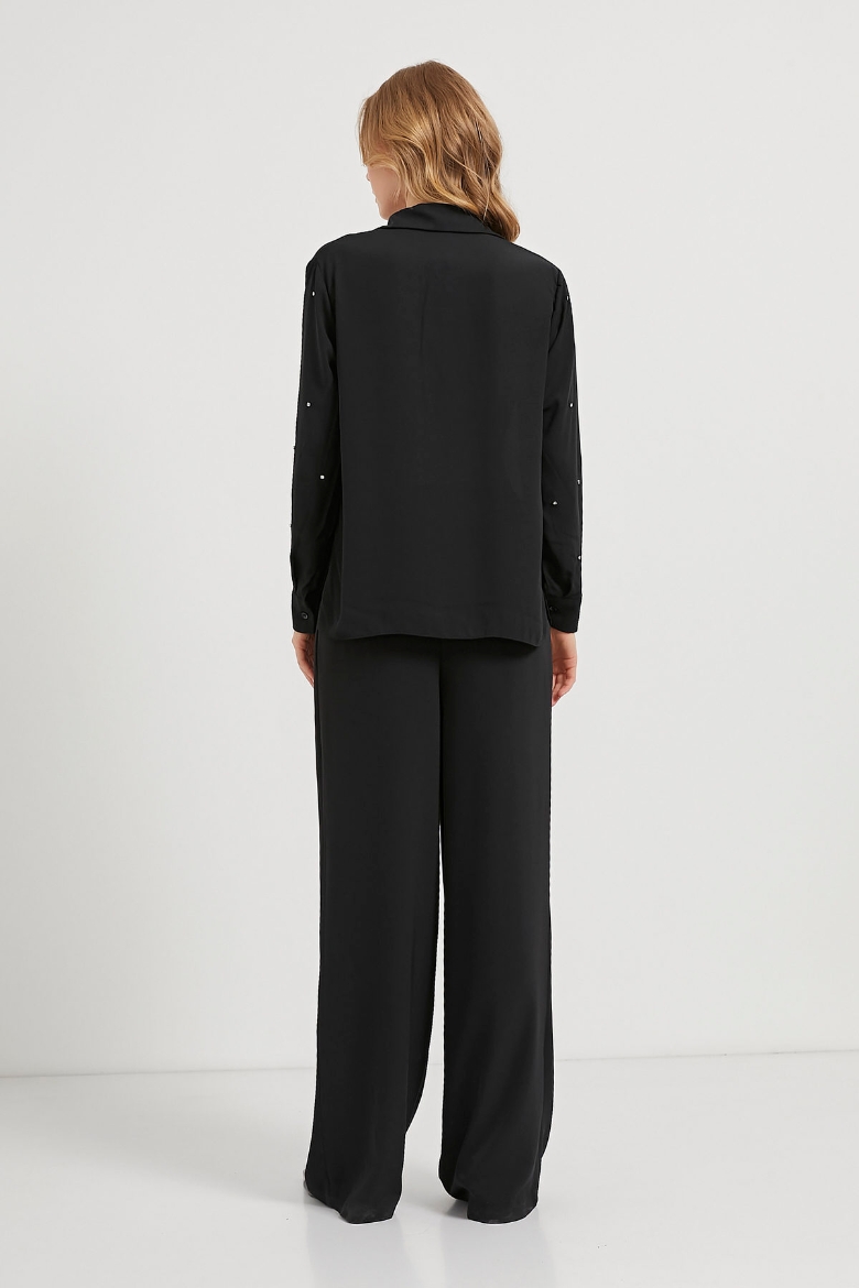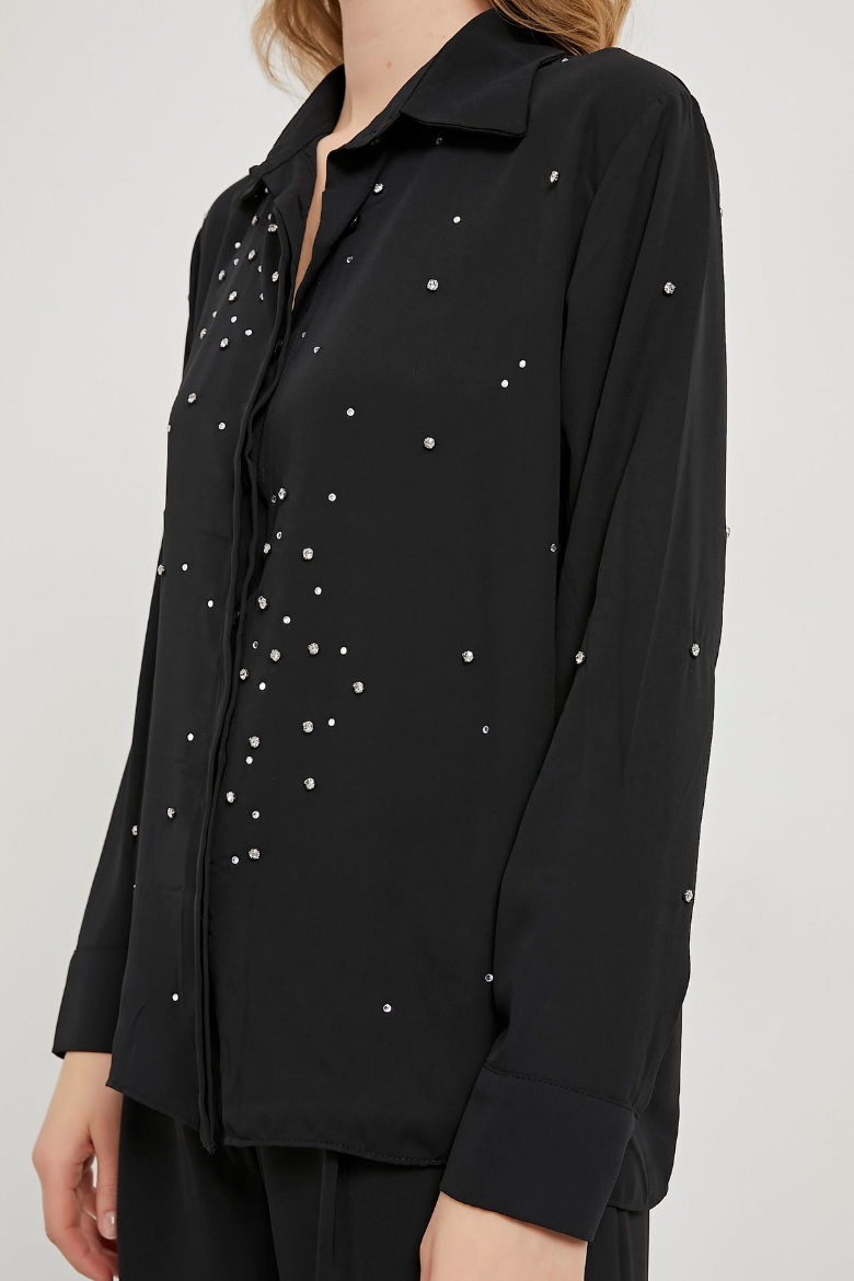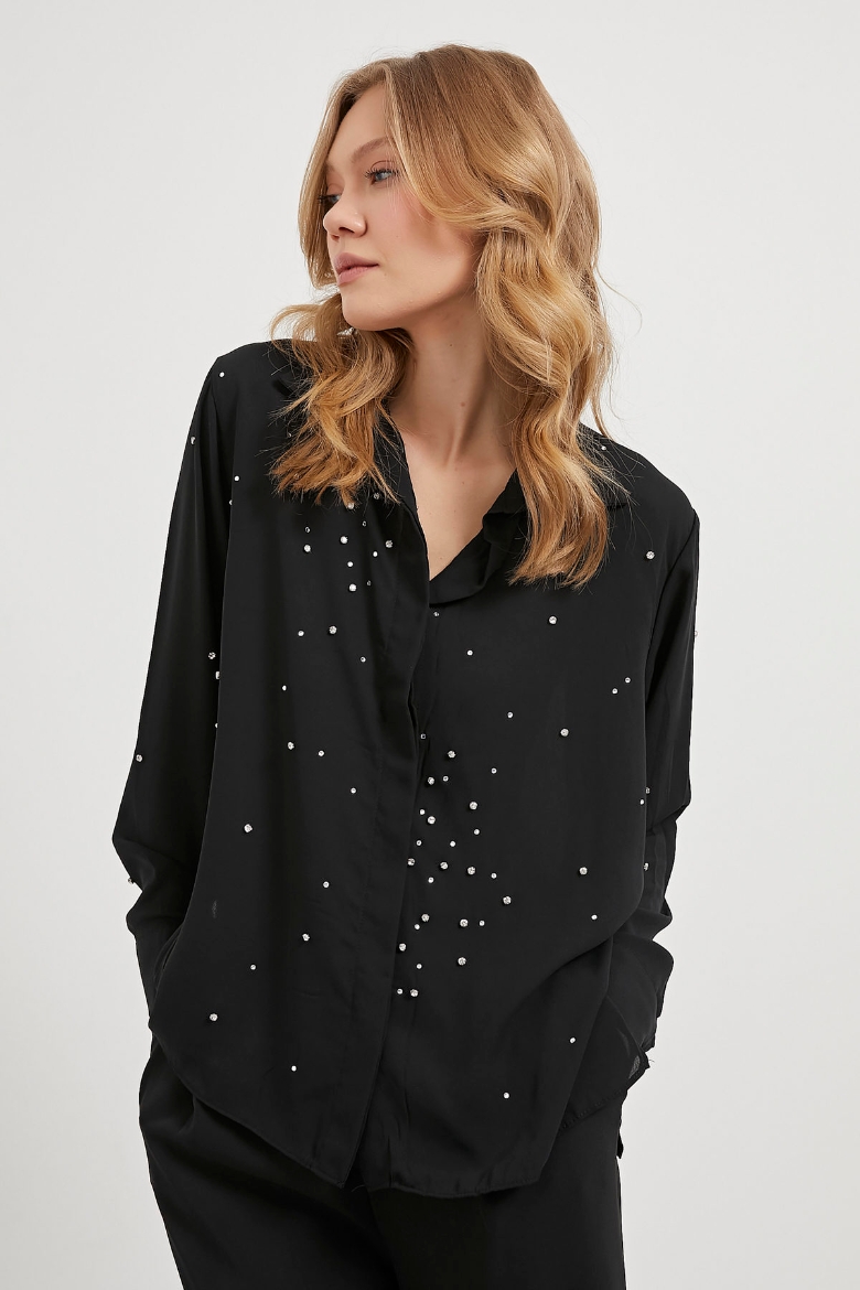 ARMALIFE 2589 TAŞ DETAYLI TRANSPARAN KADIN GÖMLEK