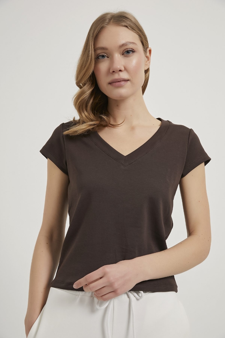 ARMALIFE 26652 V YAKA ESNEK CROP KADIN T-SHIRT