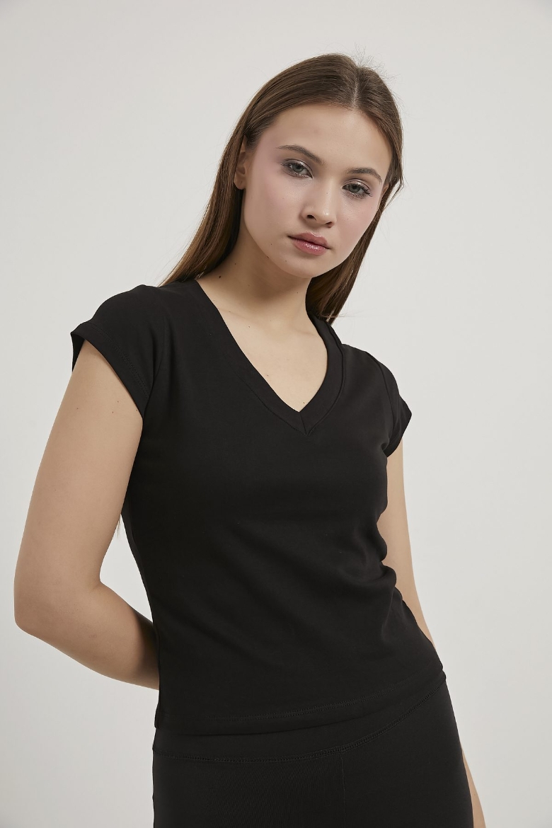 ARMALIFE 26652 V YAKA ESNEK CROP KADIN T-SHIRT