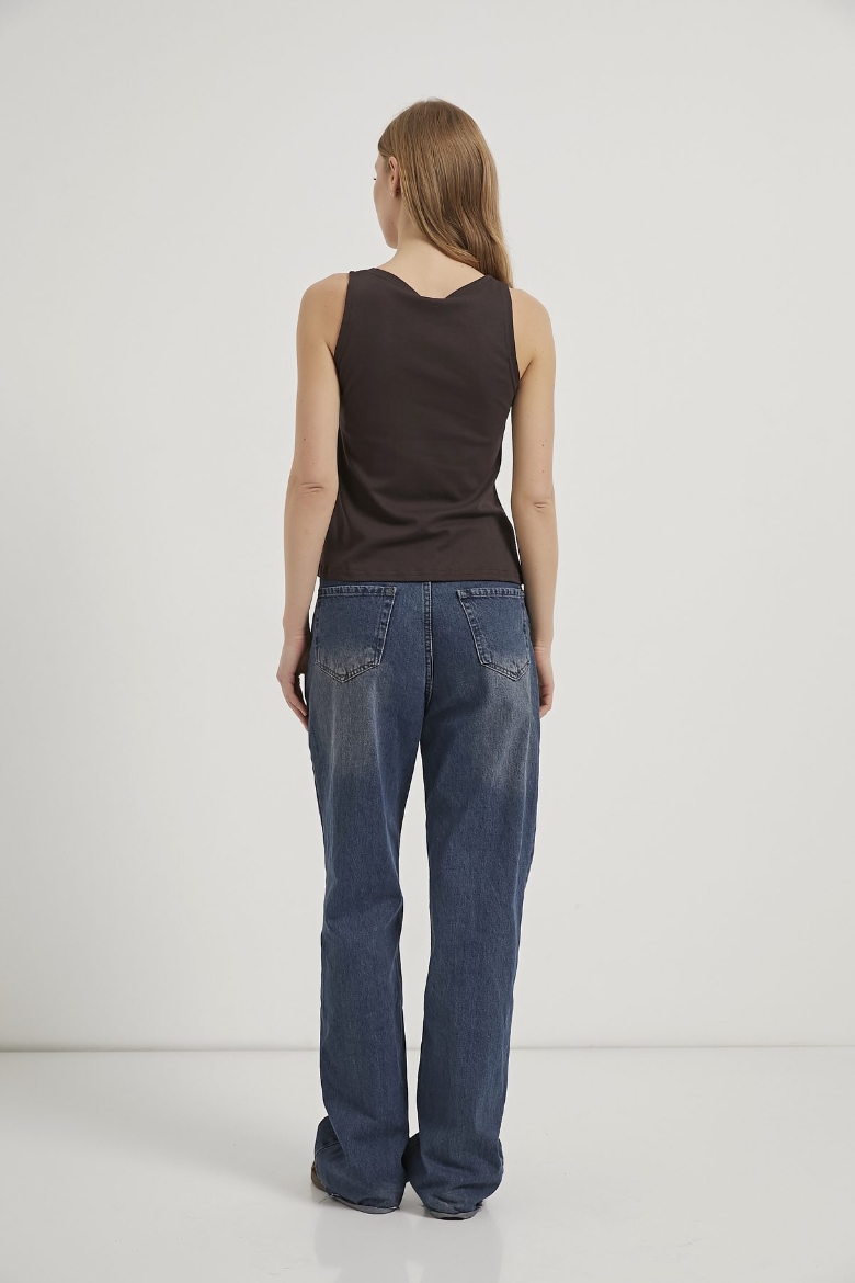 ARMALIFE 26654 ETEĞİ VOLANLI KOLSUZ KADIN BLUZ