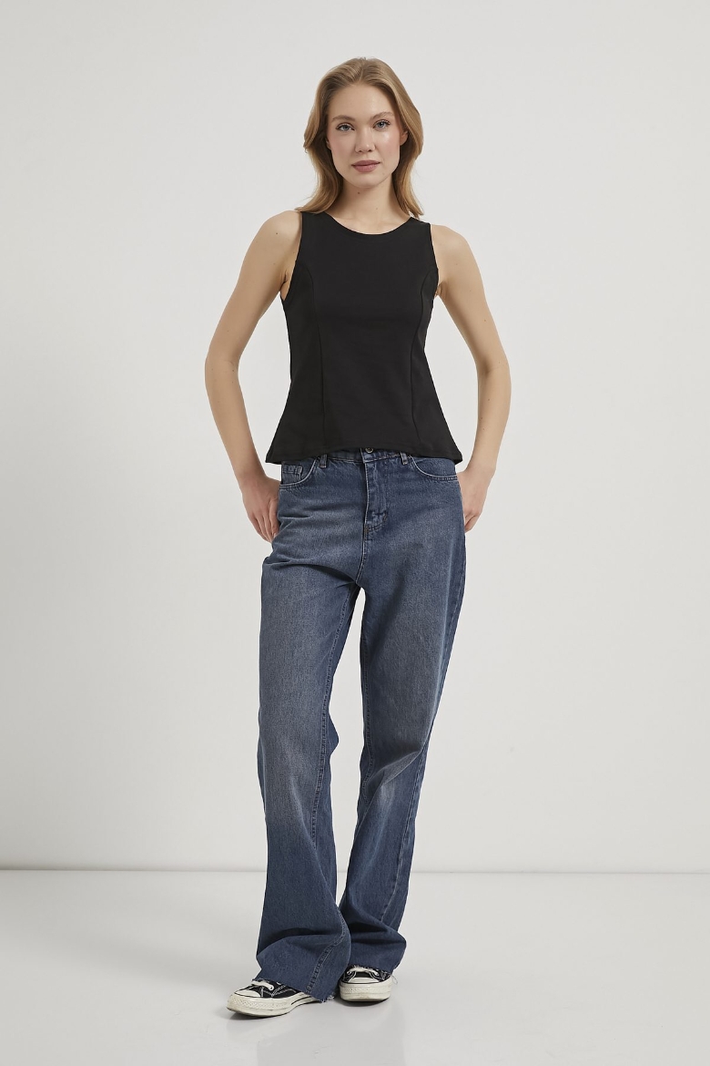 ARMALIFE 26654 ETEĞİ VOLANLI KOLSUZ KADIN BLUZ