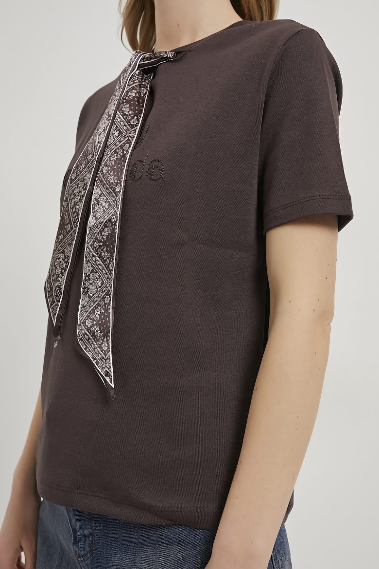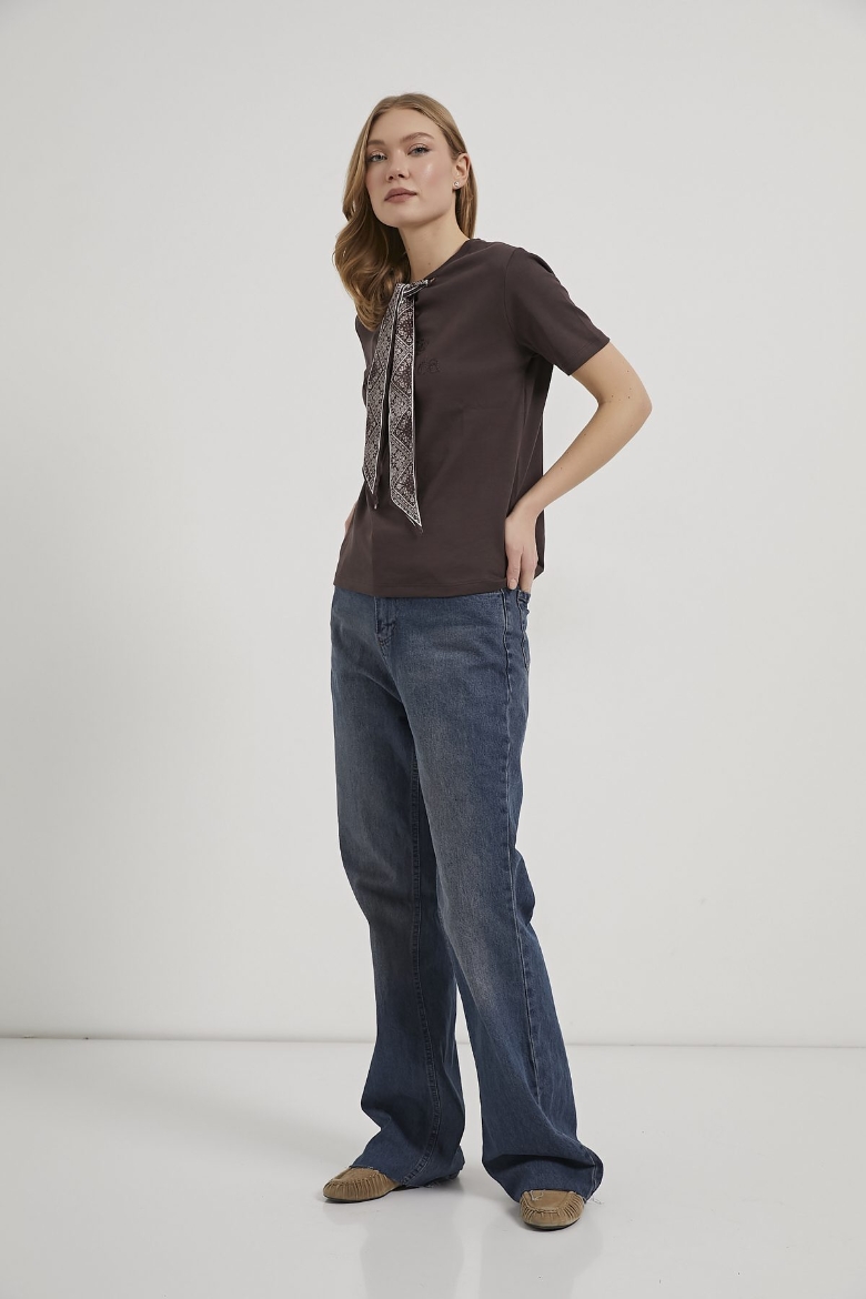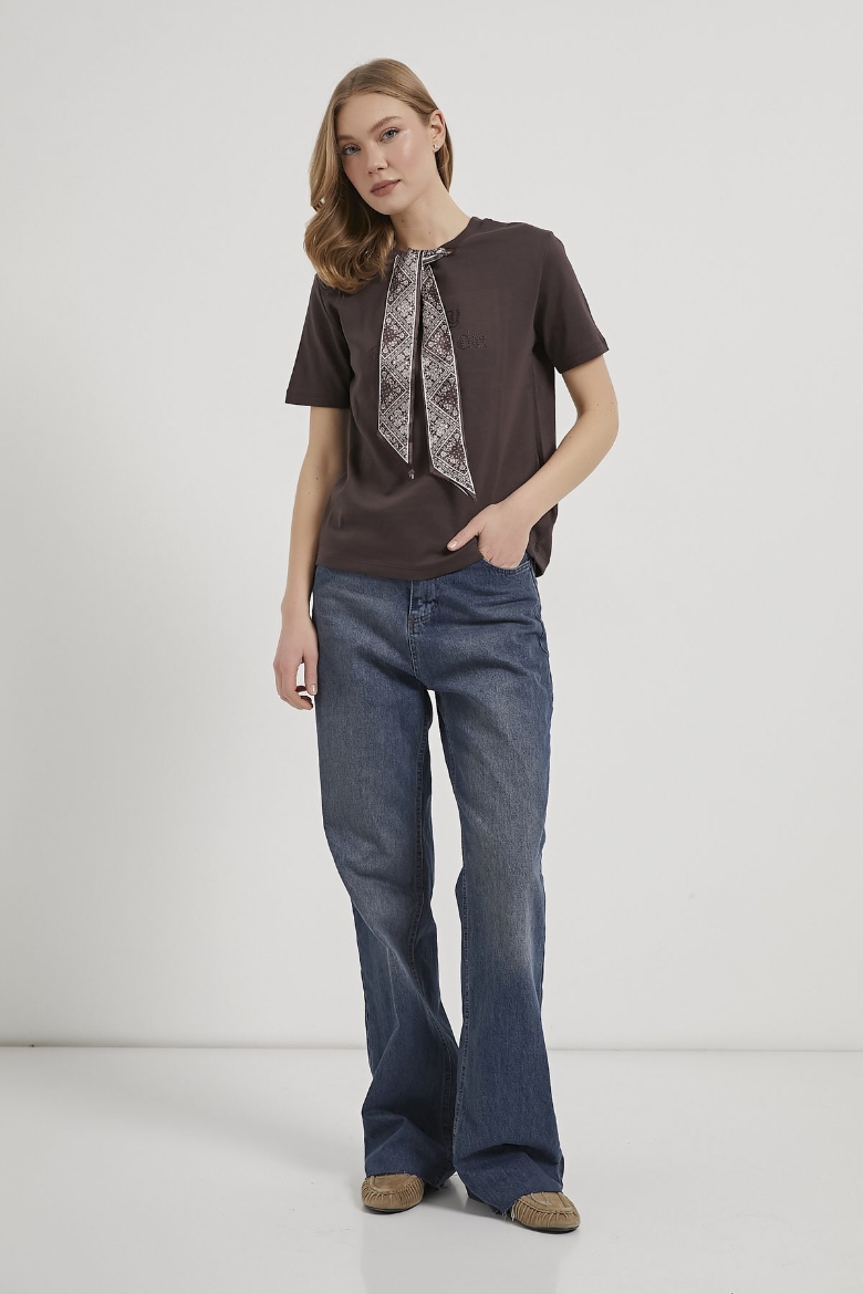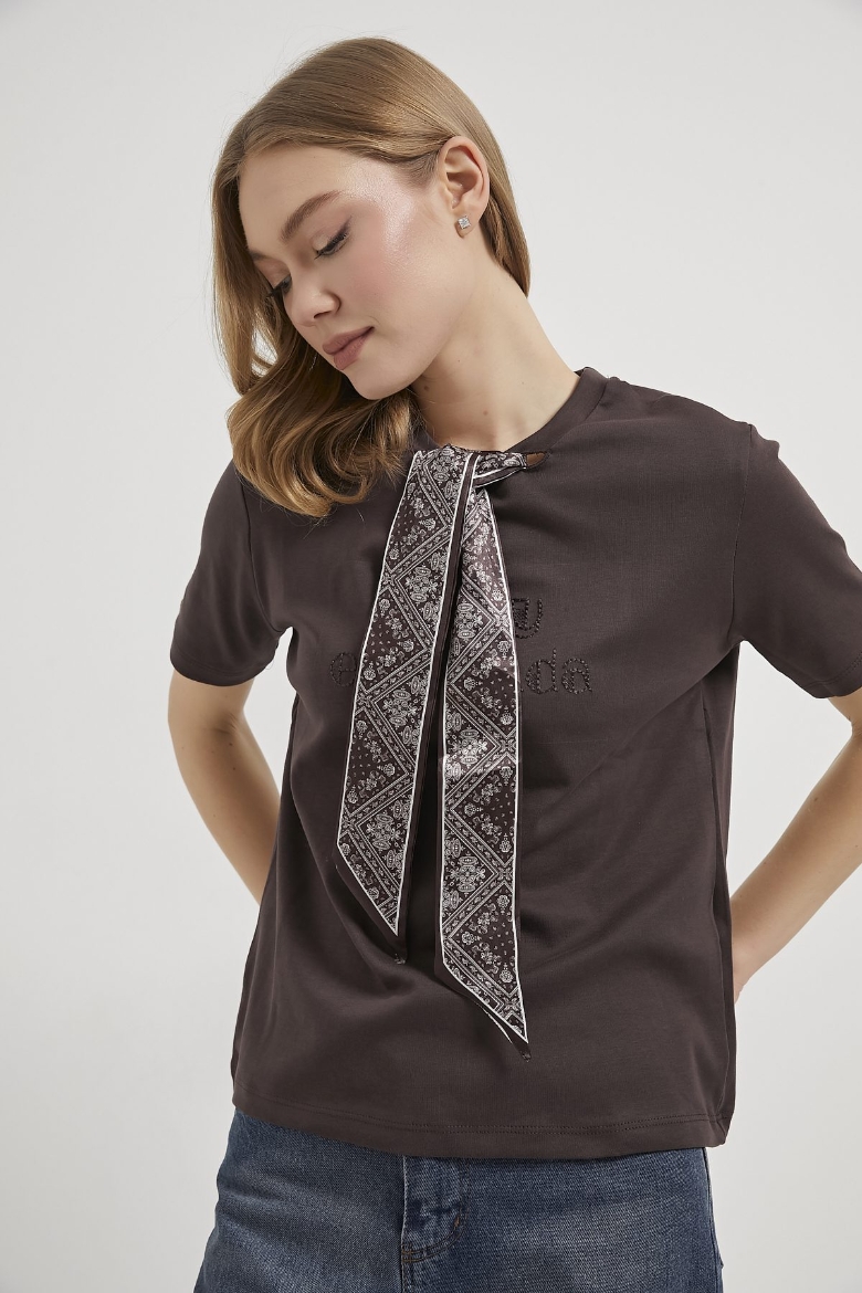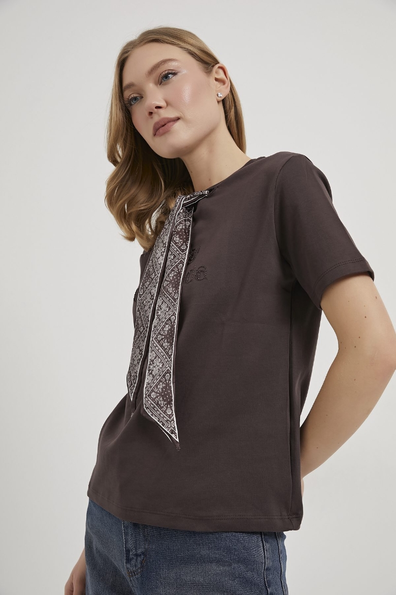 ARMALIFE 26667 FULAR DETAYLI NAKIŞLI KADIN T-SHIRT