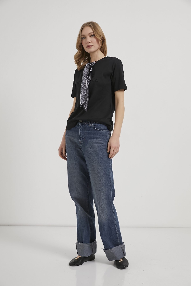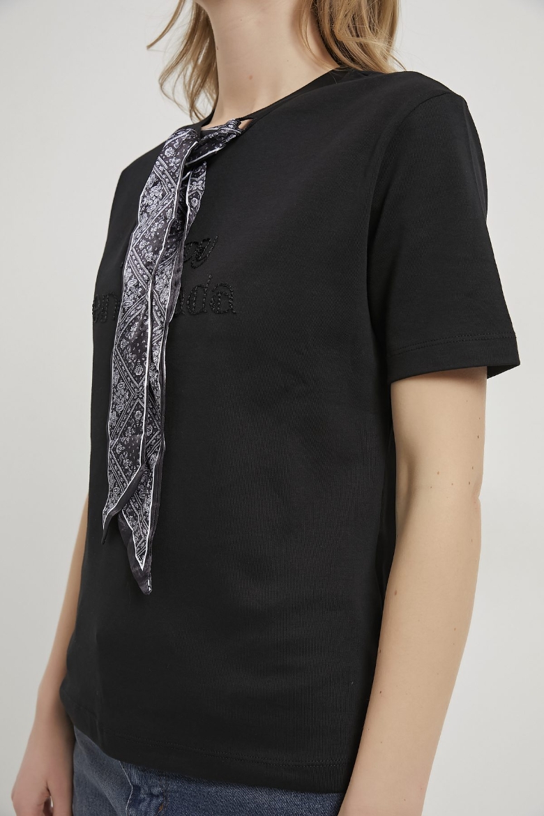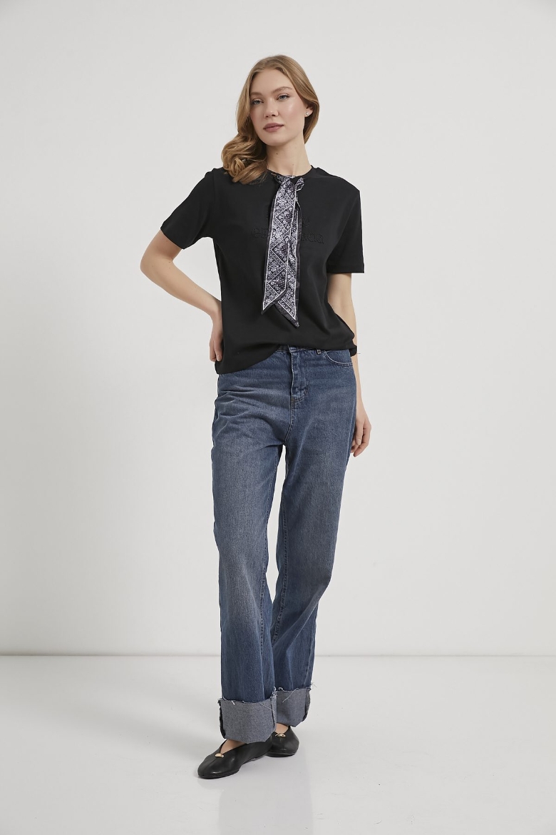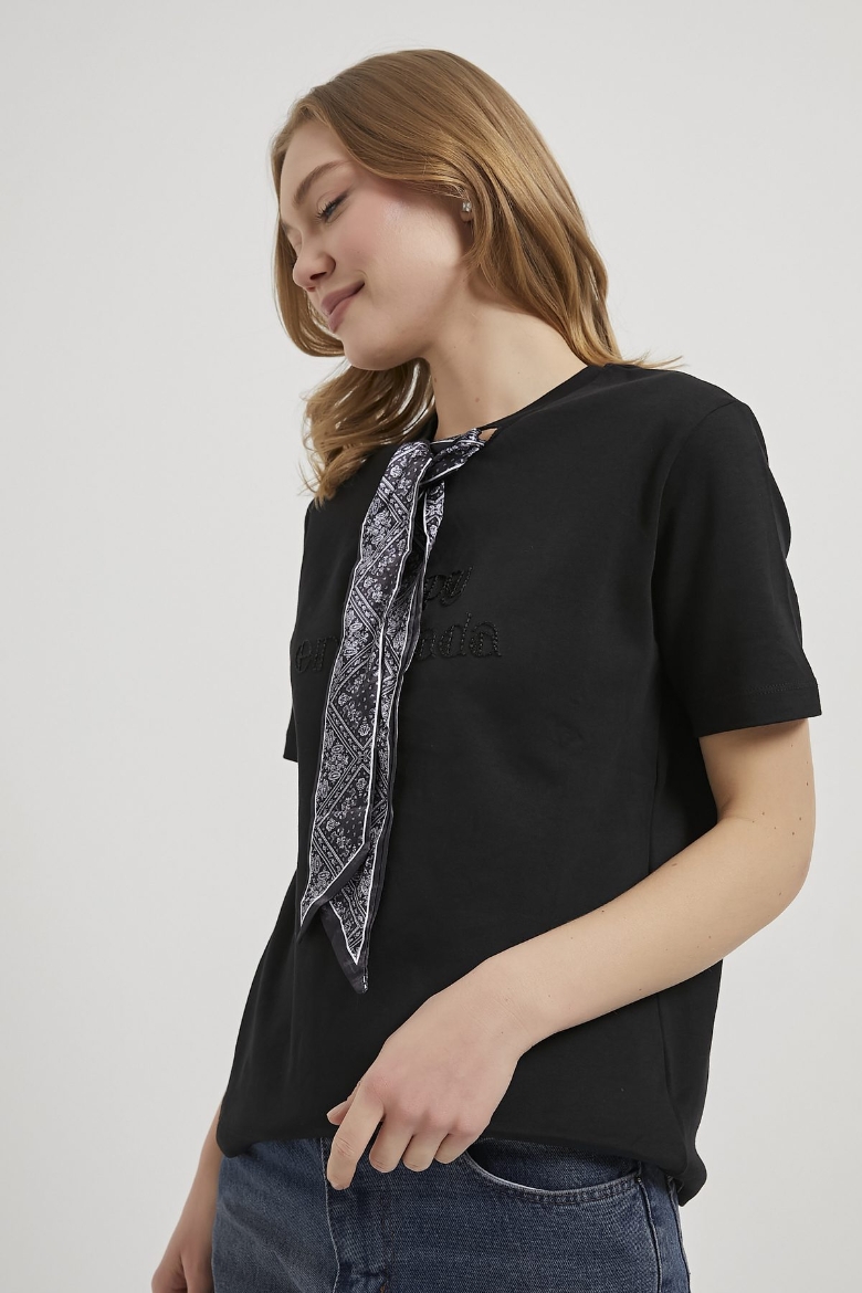 ARMALIFE 26667 FULAR DETAYLI NAKIŞLI KADIN T-SHIRT