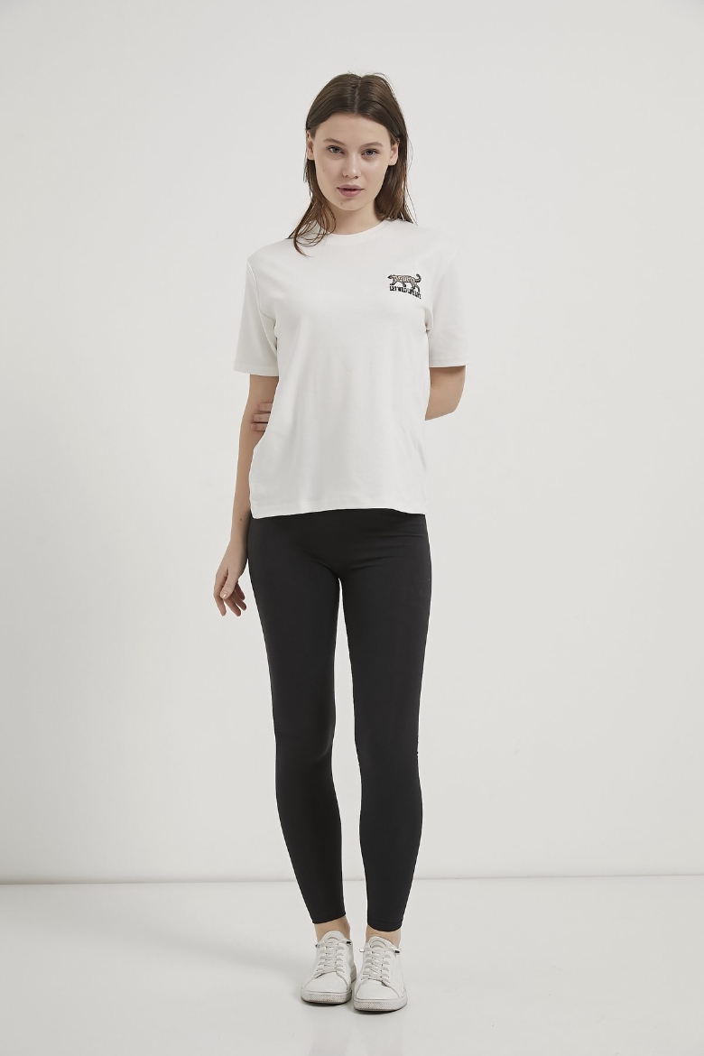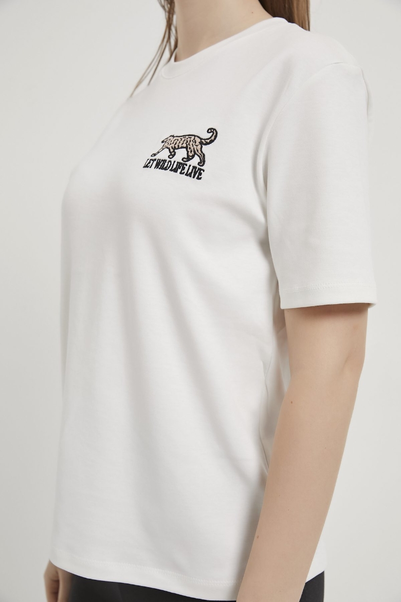 ARMALIFE 26728 BİS YAKA LEOPAR NAKIŞLI ESNEK KADIN T-SHIRT