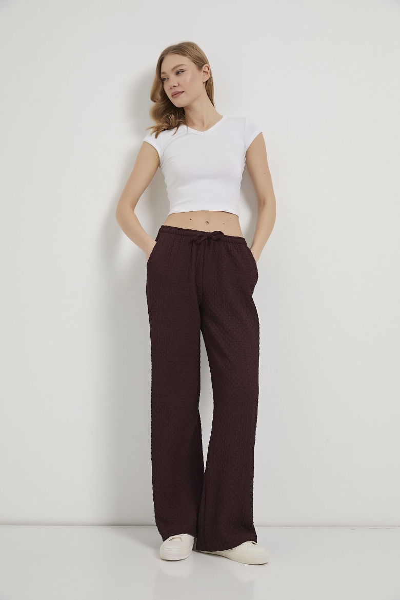 ARMALIFE 26785 BEL BAĞLAMA DETAYLI DOKULU KADIN PANTOLON
