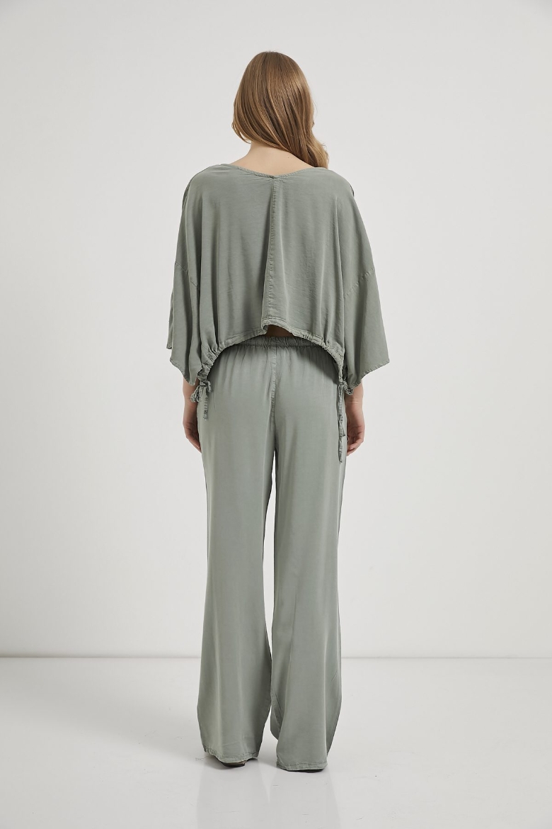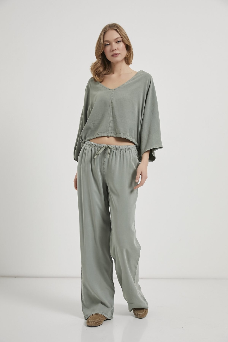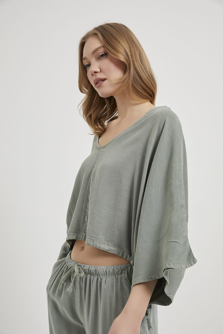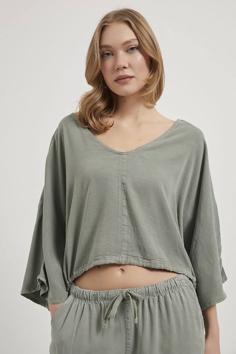 ARMALIFE 2787 TENCEL BELİ LASTİK DETAYLI V YAKA SALAŞ KADIN BLUZ