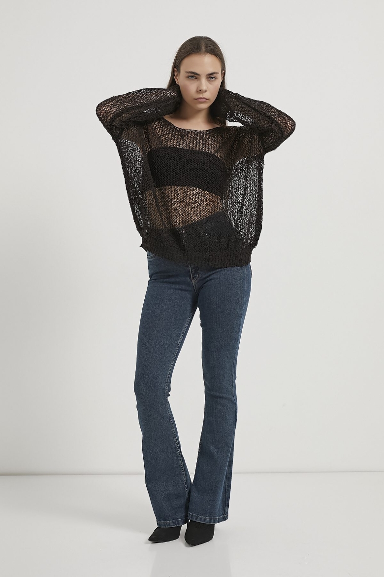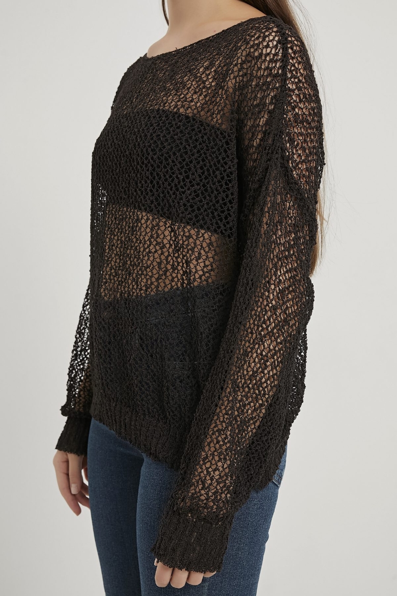 ARMALIFE 2925 DÜŞÜK OMUZ TRANSPARAN TRİKO KADIN BLUZ