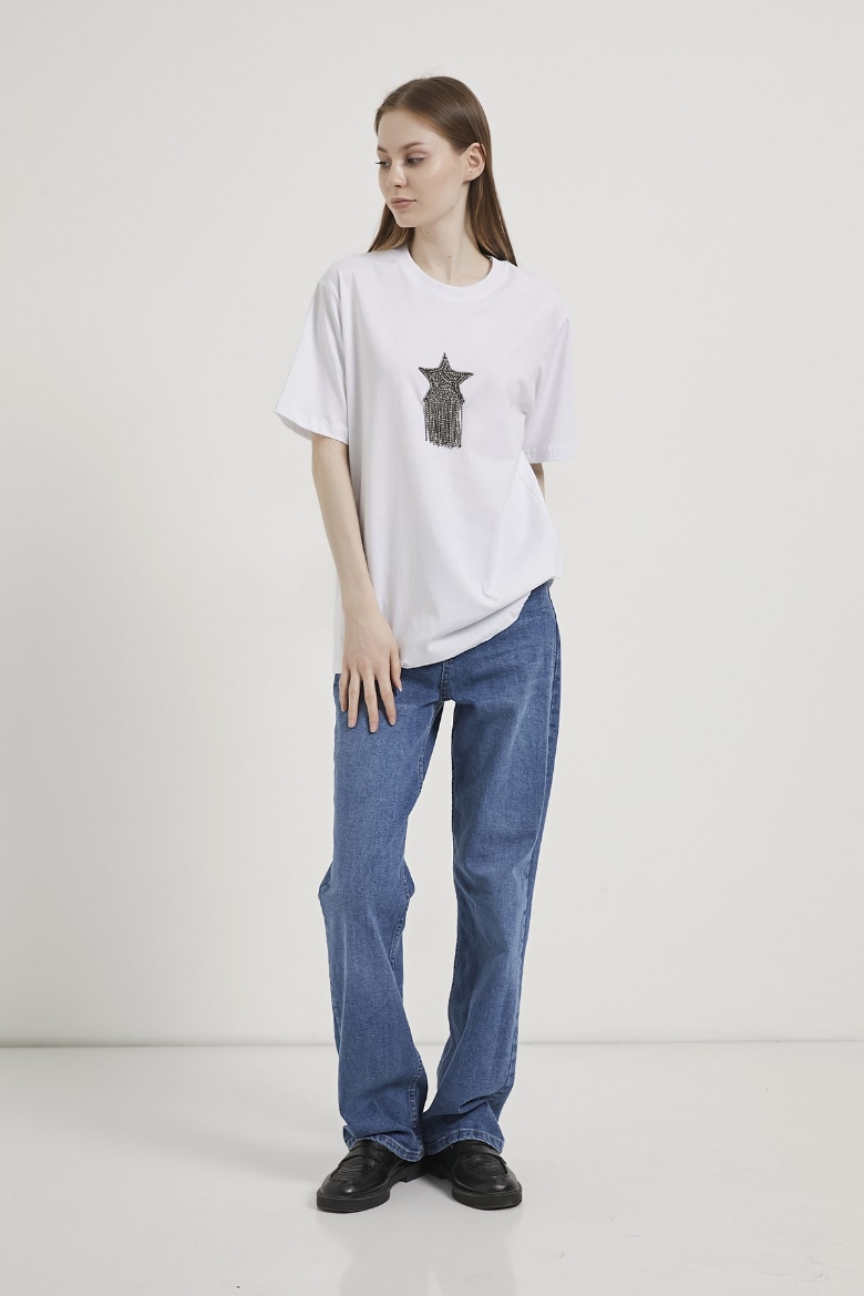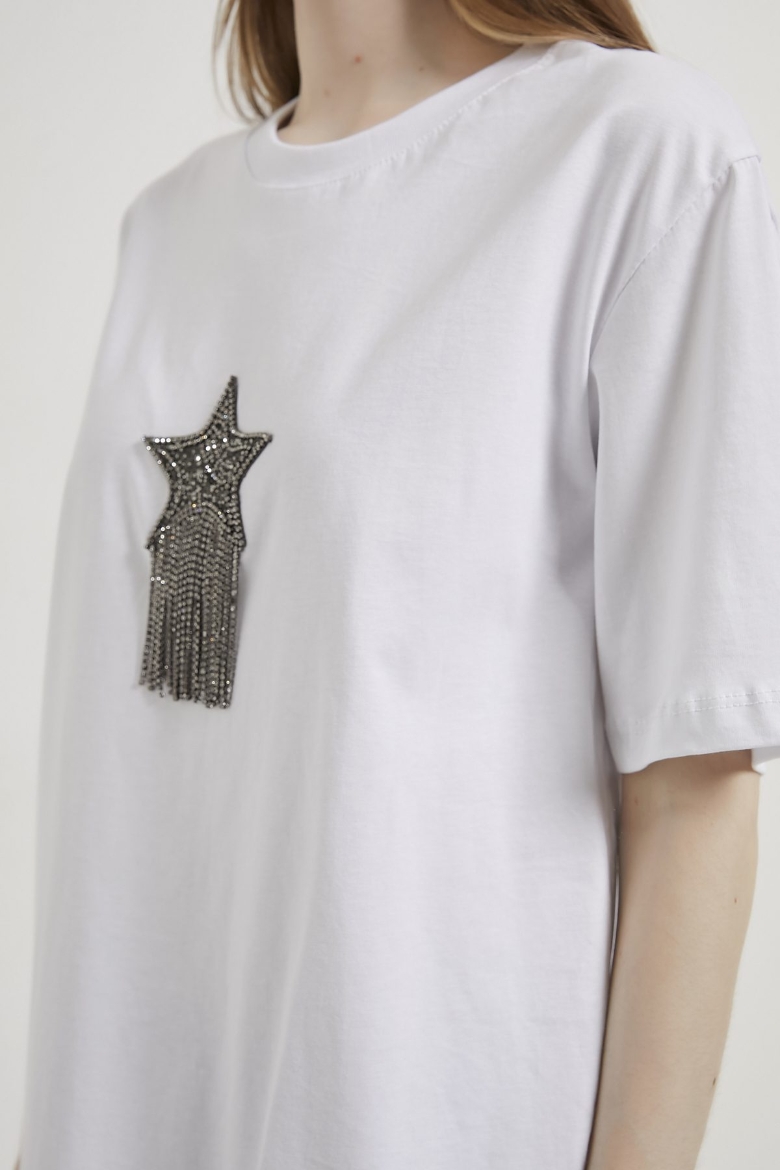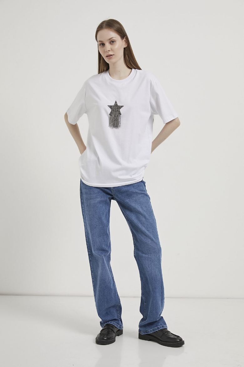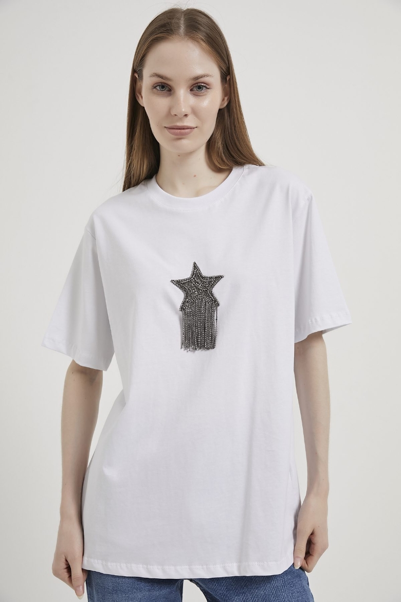 ARMALIFE 3000 BİS YAKA YILDIZLI TAŞ PÜSKÜLLÜ KADIN T-SHIRT