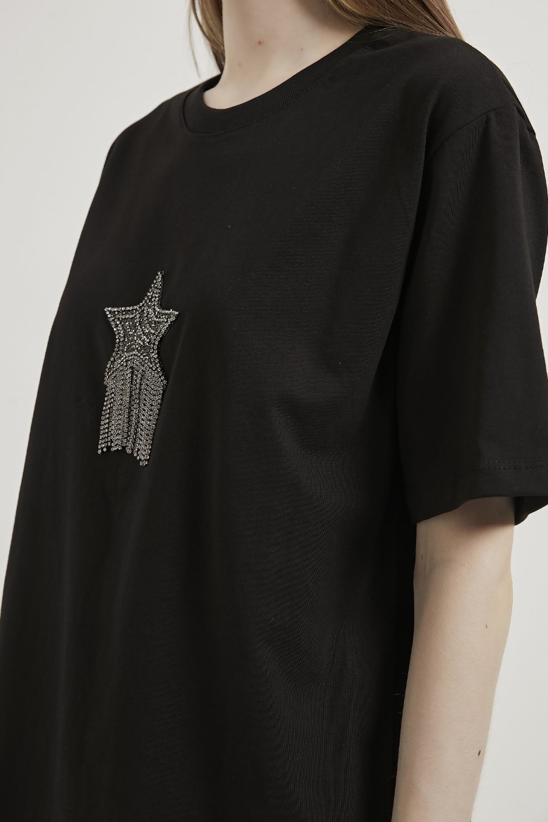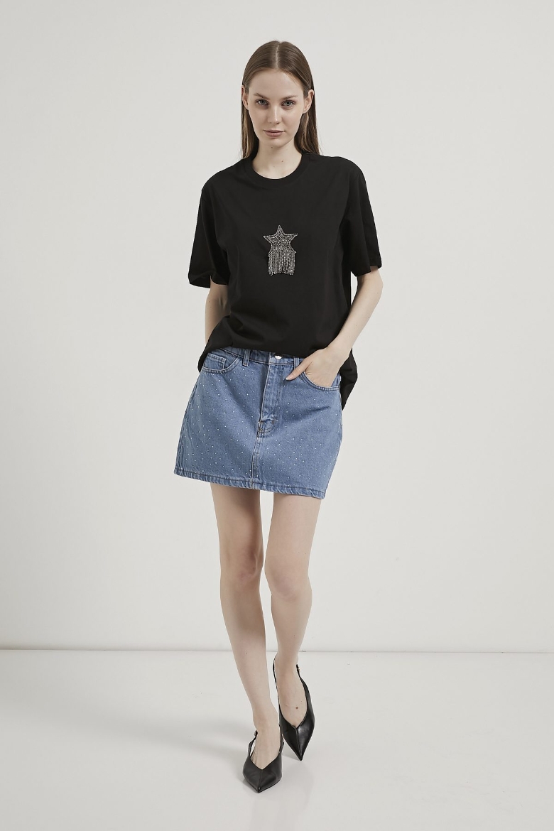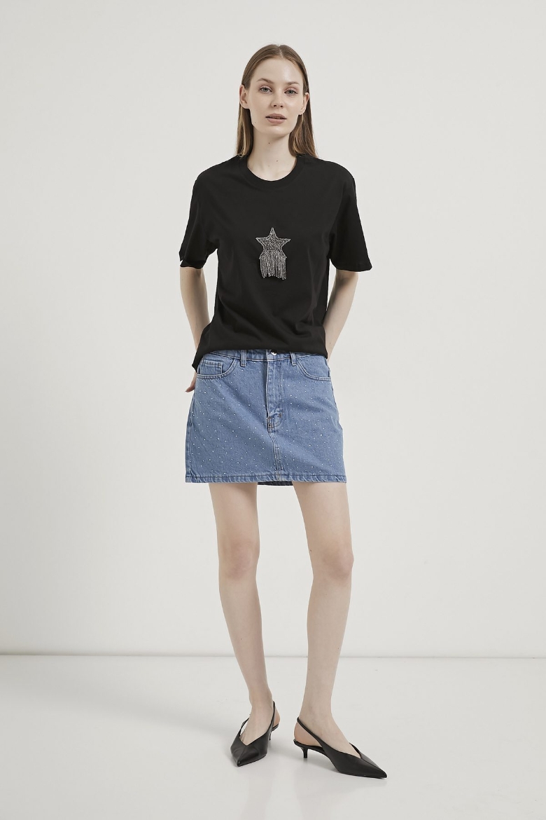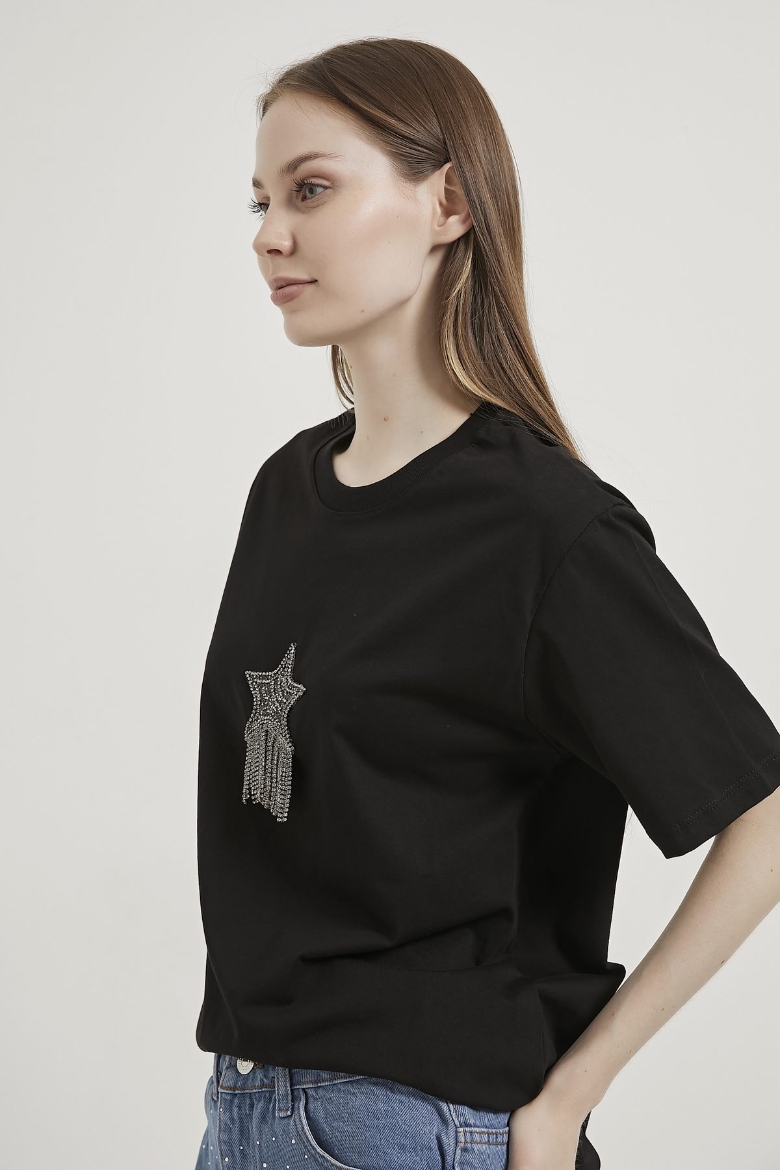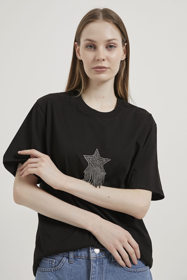 ARMALIFE 3000 BİS YAKA YILDIZLI TAŞ PÜSKÜLLÜ KADIN T-SHIRT