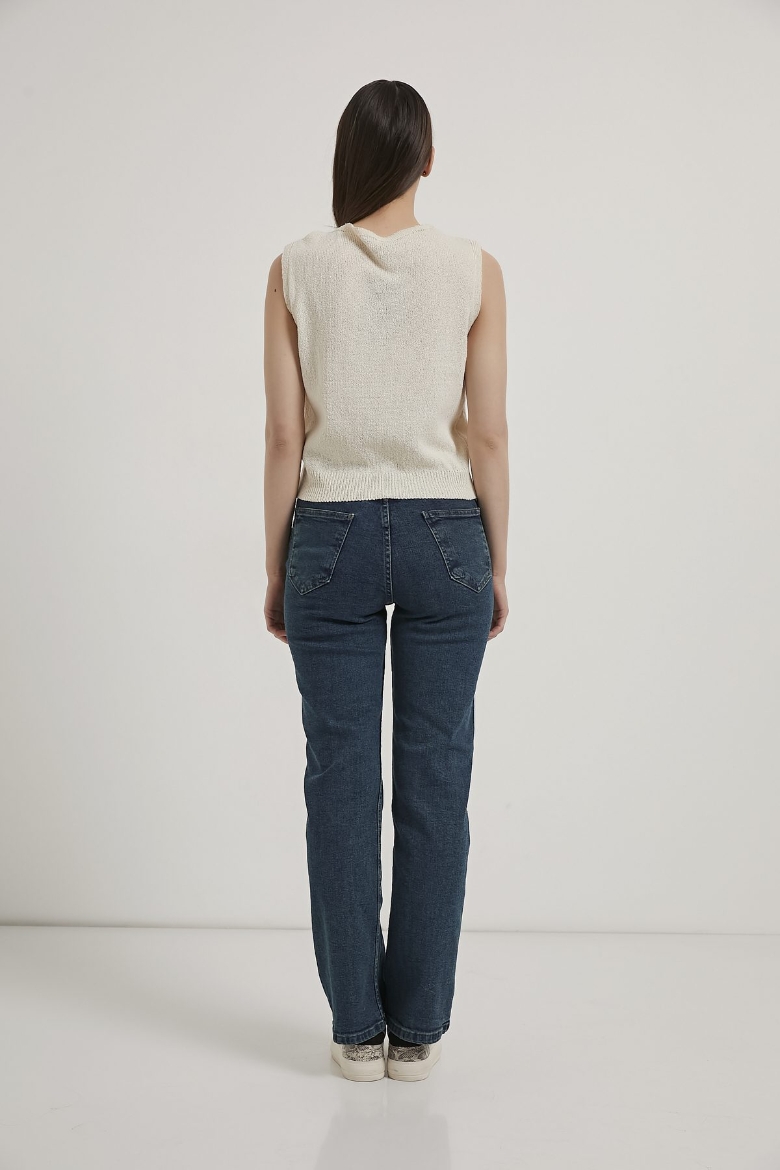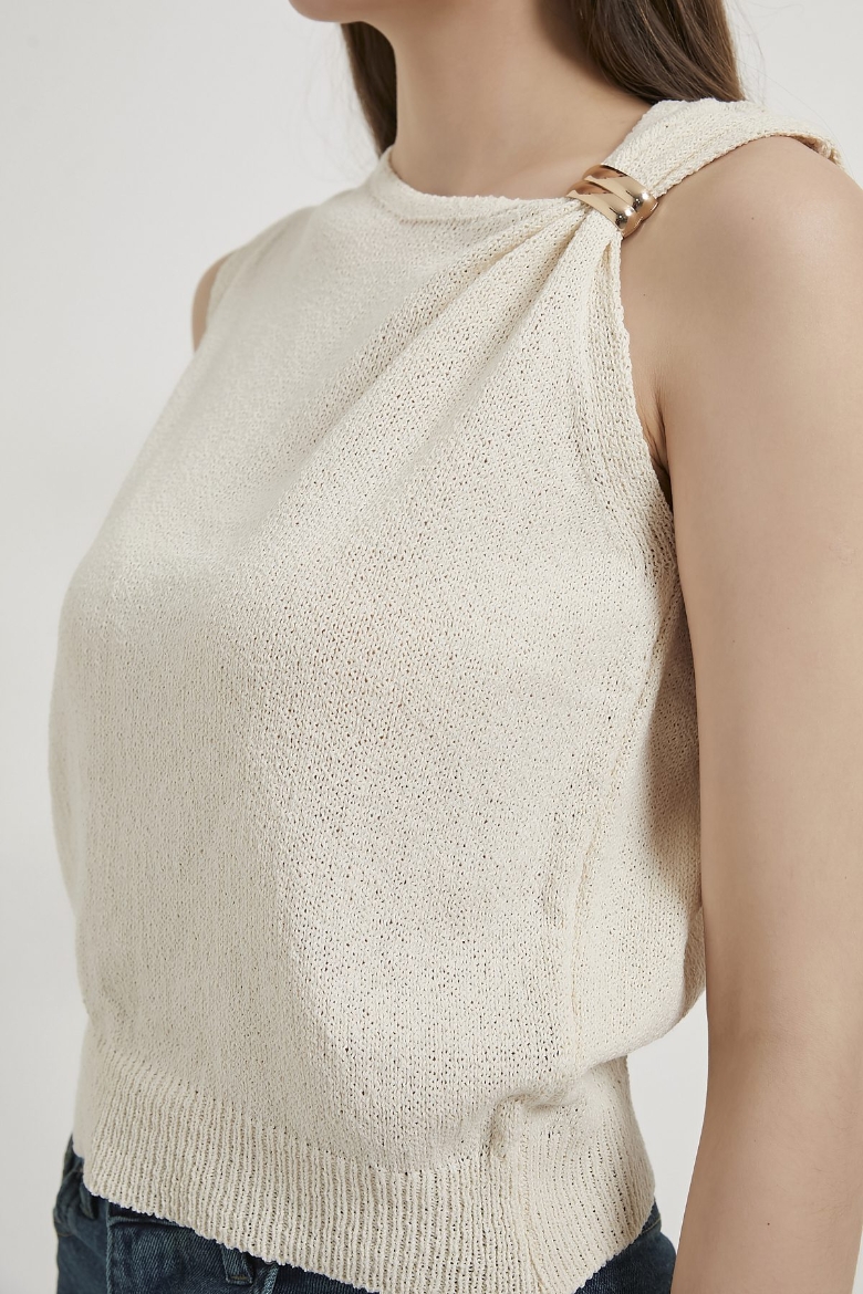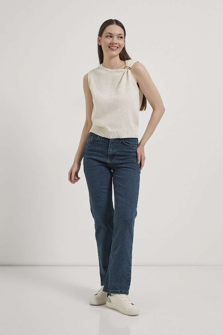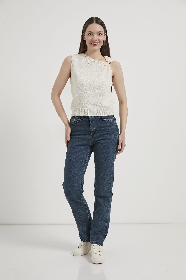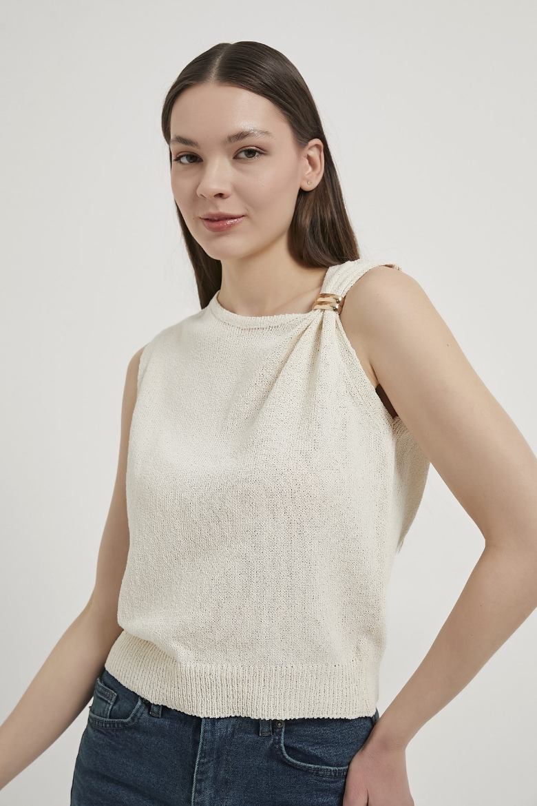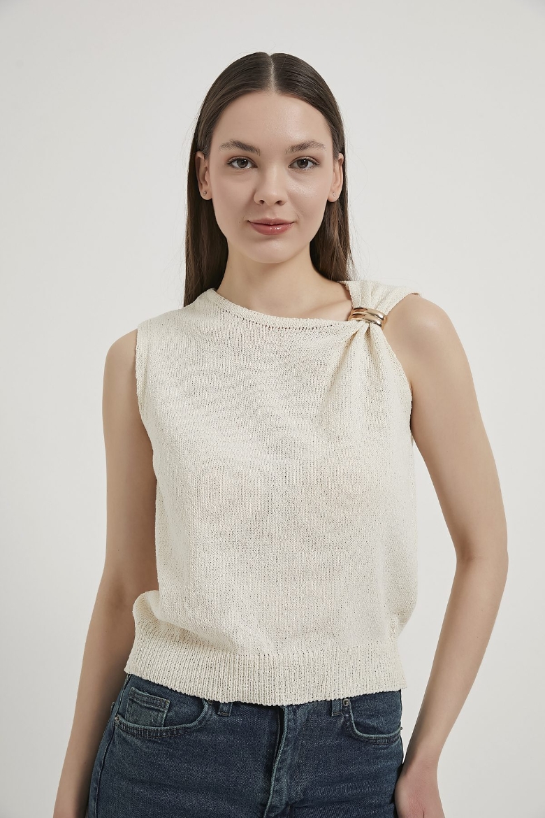 ARMALIFE 3009 OMUZ AKSESUAR DETAYLI KOLSUZ TRİKO KADIN BLUZ
